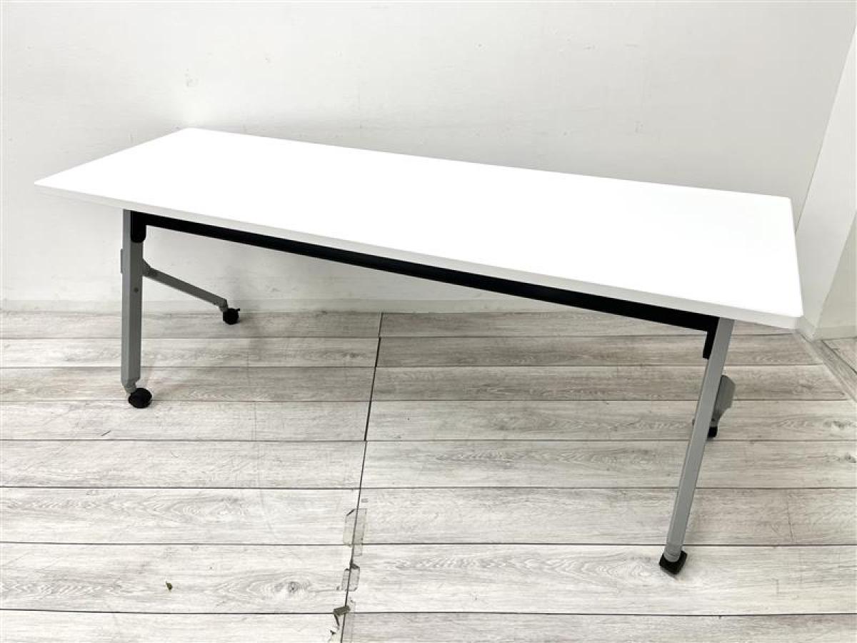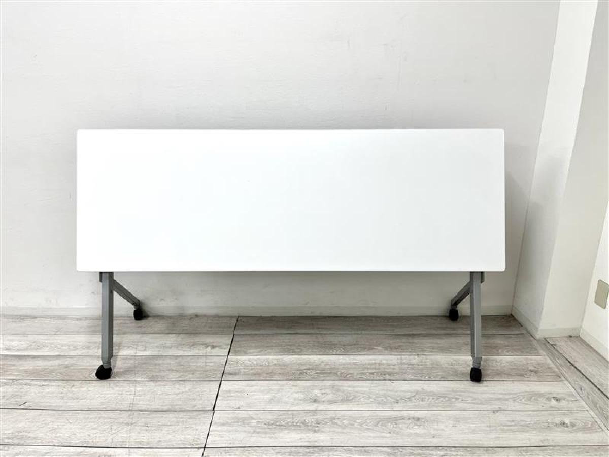 【定価8万円】【折り畳み収納可能!キャスター付きで移動も簡単なスタックテーブル!】■オカムラ/フラプター ■スタックテーブル/ホワイト ■W1800/D600/H720 ※幕板無- 仙台店