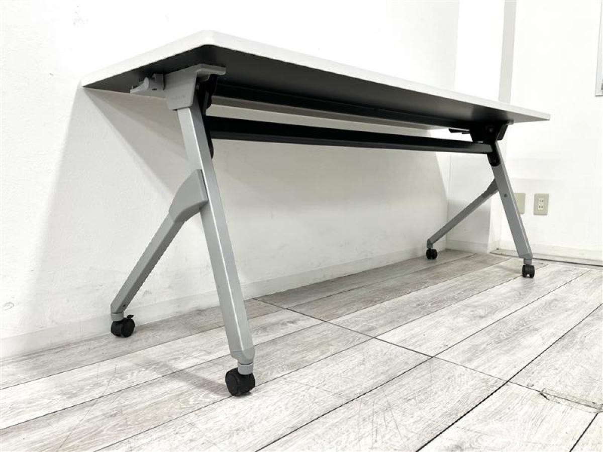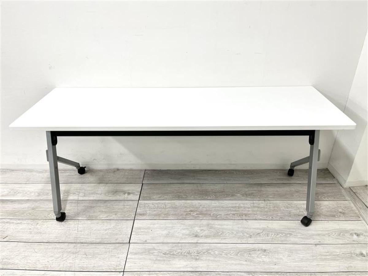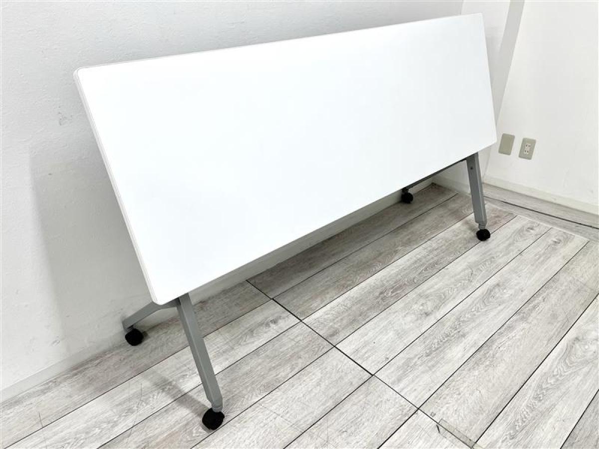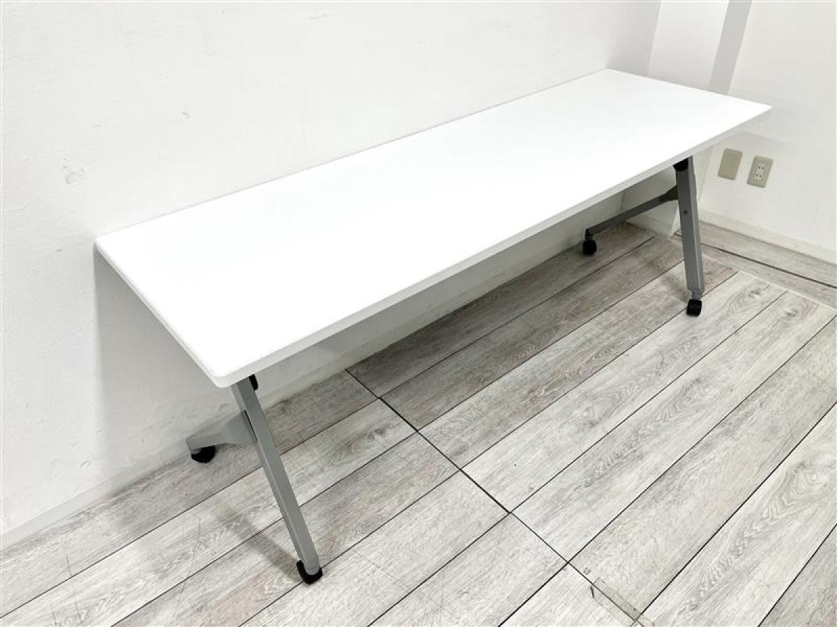 【定価8万円】【折り畳み収納可能!キャスター付きで移動も簡単なスタックテーブル!】■オカムラ/フラプター ■スタックテーブル/ホワイト ■W1800/D600/H720 ※幕板無在庫がある店舗一覧