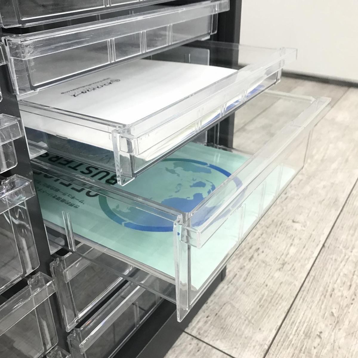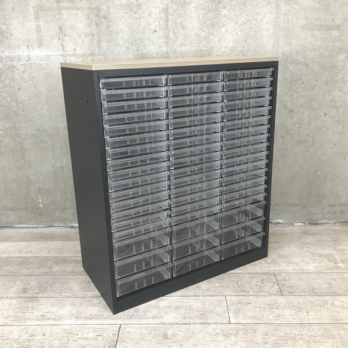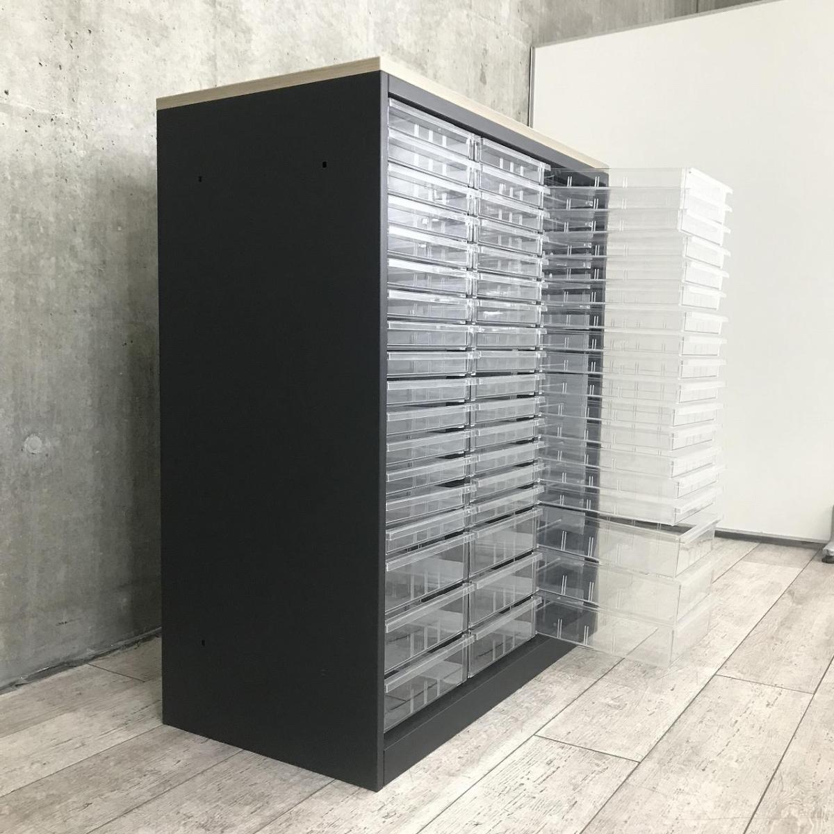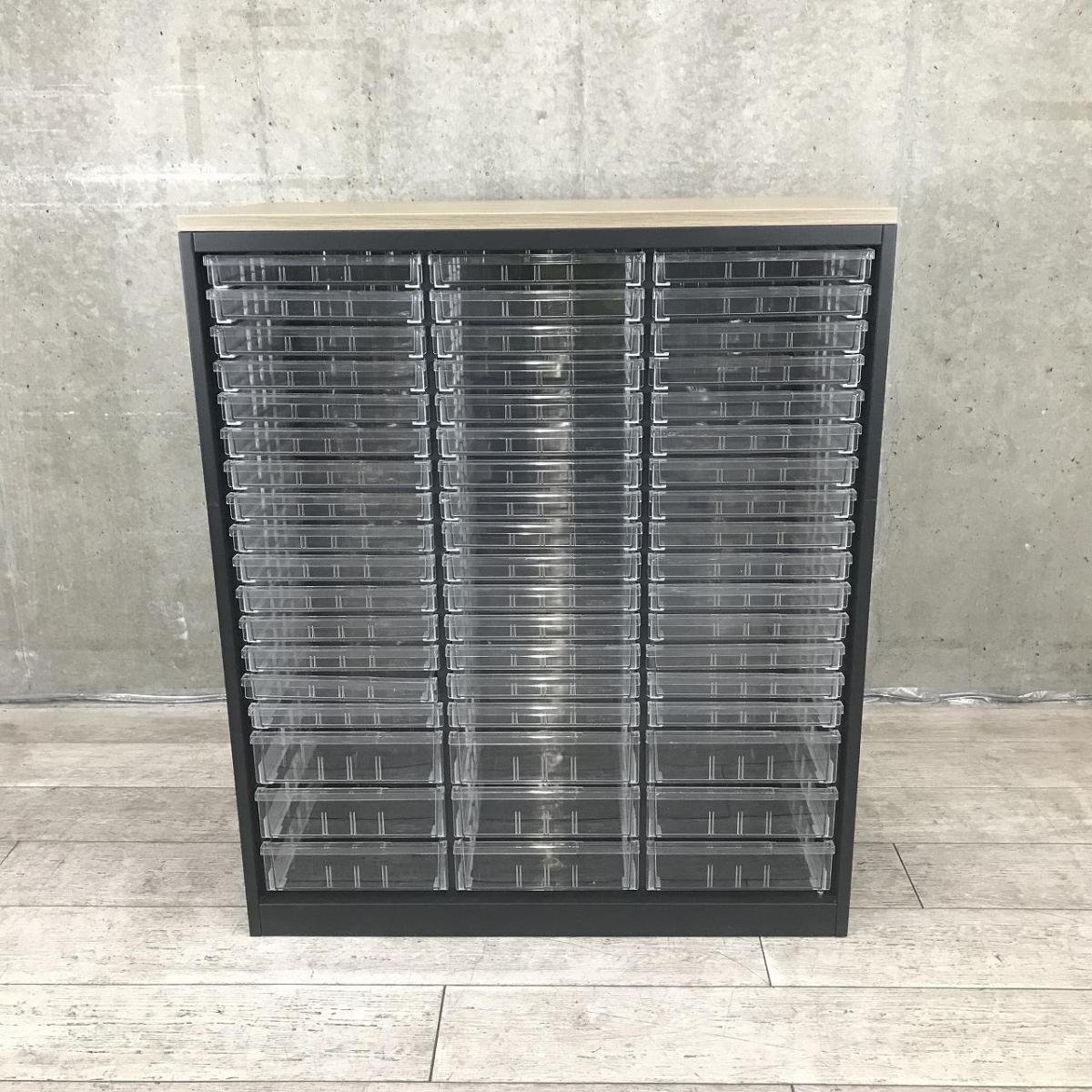【書類・備品整理の必需品!】【珍しいクリトレが入荷!3列浅型47段+深型8段】■イトーキ(ITOKI) エス(eS)キャビネット クリスタルトレー ■3列(浅型47段+深型8段) ■ブラック/天板:ナチュラル【大容量!】- 在庫数