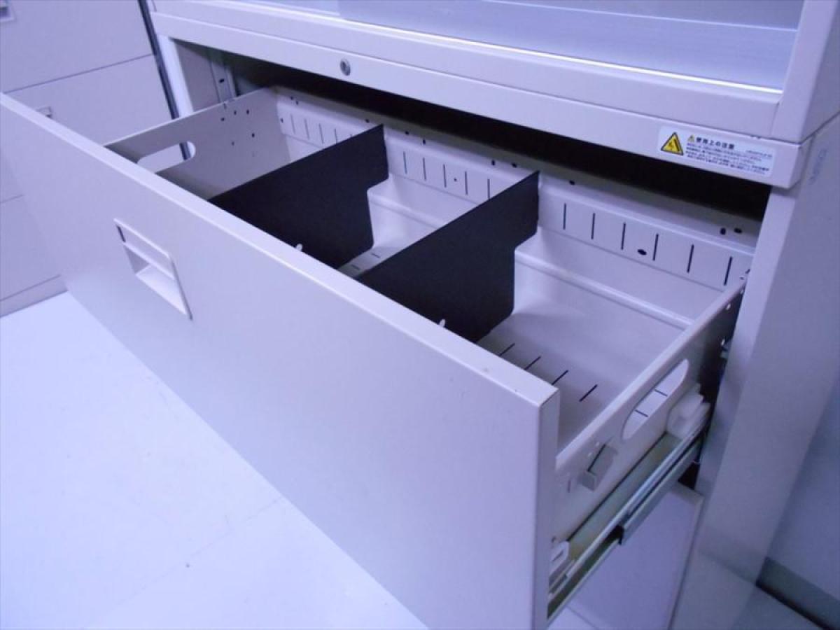 - 一部不具合ありそ引出の開閉不可、施錠不可、棚板無しといったの書庫の本来の効用を果たすための機能以外の一部が使用不可(例、扉、引出の開閉がしづらいなどがある。 )