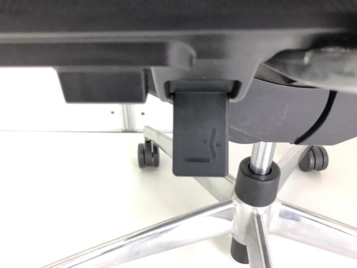ロッキングは、任意の位置でロックすることが可能で、強さの調節は座面右下のグリップで座った状態で行えます。