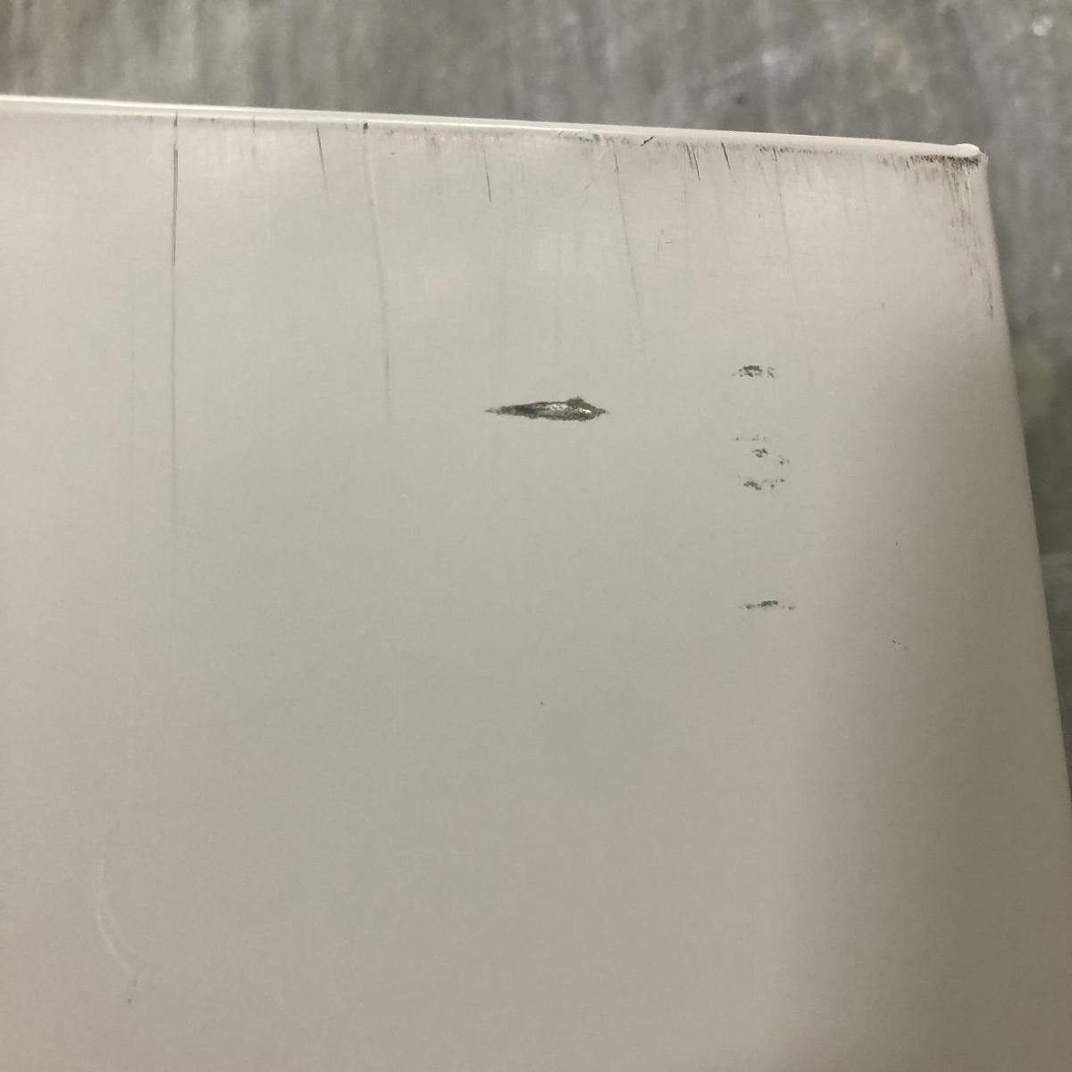 - かなり強い黄ばみ・変色が商品全体にある。(例、天板、正面、背部、サイド部分にある。)