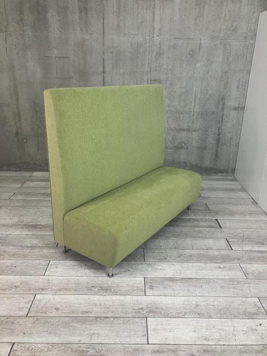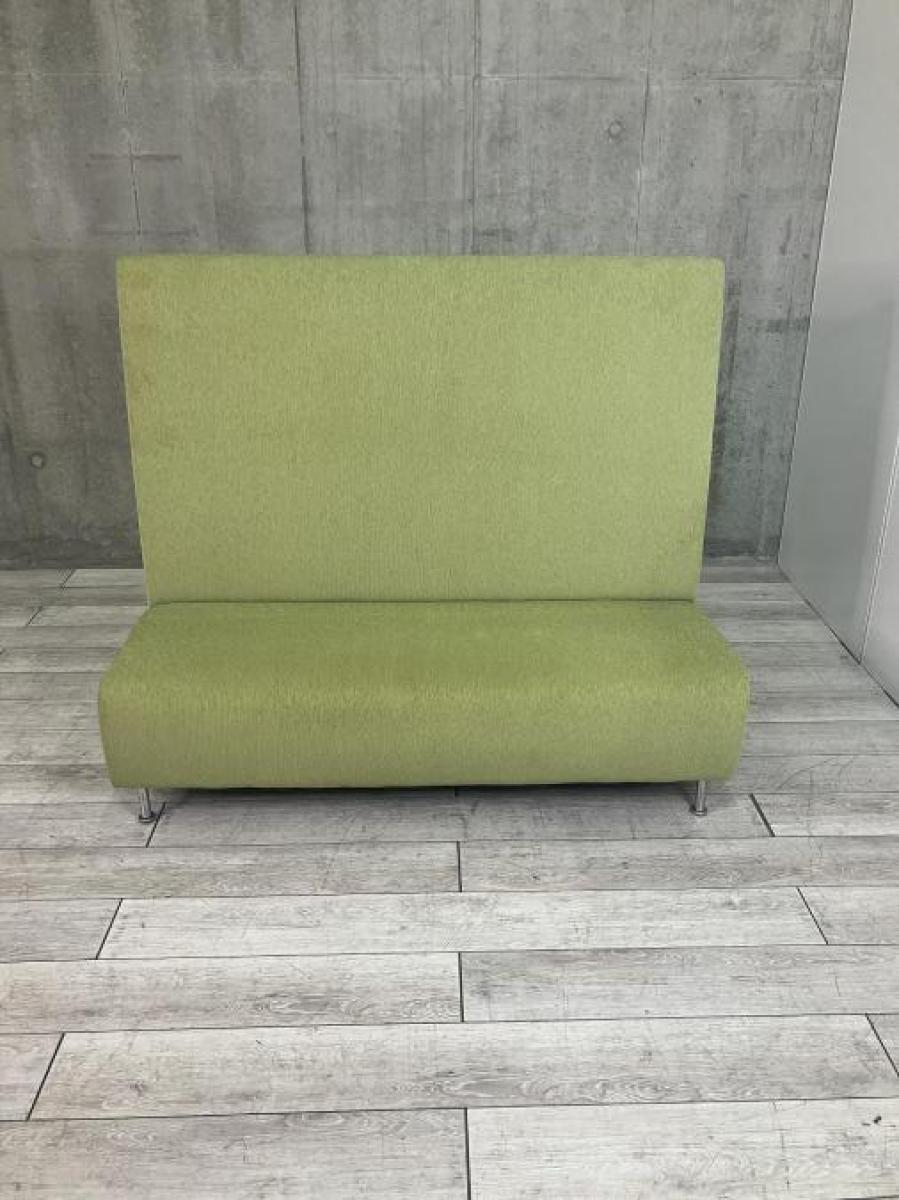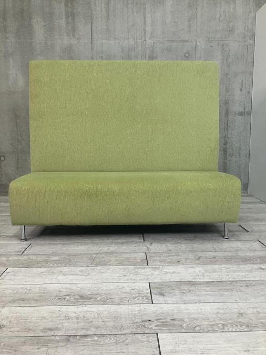 【背面が高いのでちょっとした目隠しとしても使用可能!】■パブリック社製 2人用ソファ W1500mm ■背付き 肘無し ■グリーン【ABW商材】【関東倉庫在庫品】【弊社使用欄:A00987846】♢- 全店共通商品
