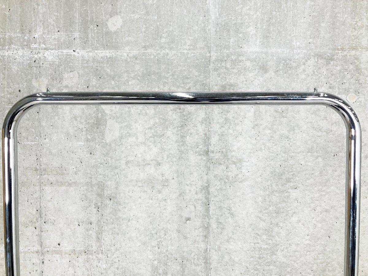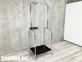 片山正通のデザインによるハンガーラックです。 ホテルのロビーを行き来する荷物用のワゴンからインスピレーションを得てデザインされた製品。 住まいにクローゼットはあっても、その日に着たコートやジャケットはすぐには収納したくないものです。 そういった意味で、この製品はベッドルームだけではなくリビングにも置けるコートハンガーを目指して開発されました。 透明なキャスターは片山氏のオリジナルです。