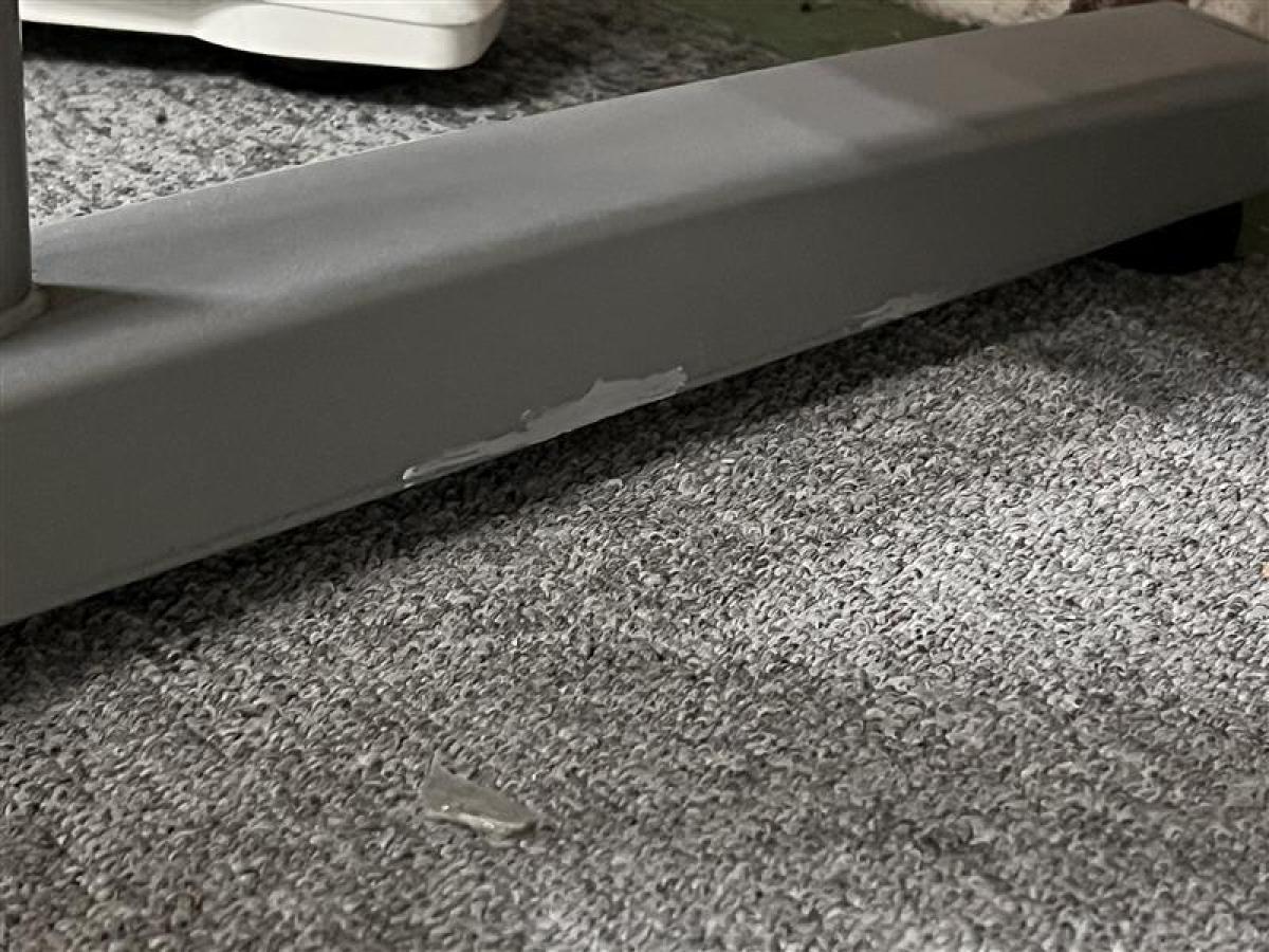 - かなり強い濃い黄ばみ・変色が商品全体にある。(例、天板、幕板、棚板、サイド部分、脚部等にある。)