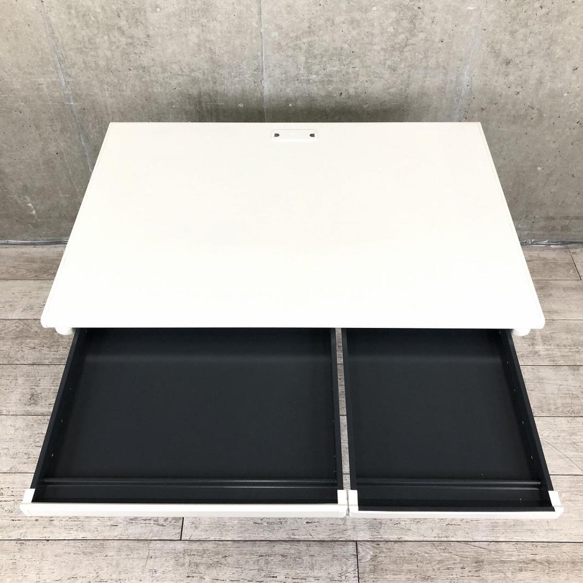 【定価約5万円】【今や希少品?!W1000mmのちょうどよいコンパクトサイズ!】■プラス(PLUS)製 LAシリーズ 平机 引き出し付 W1000㎜ ■ホワイト ■配線口 ※日焼けあり