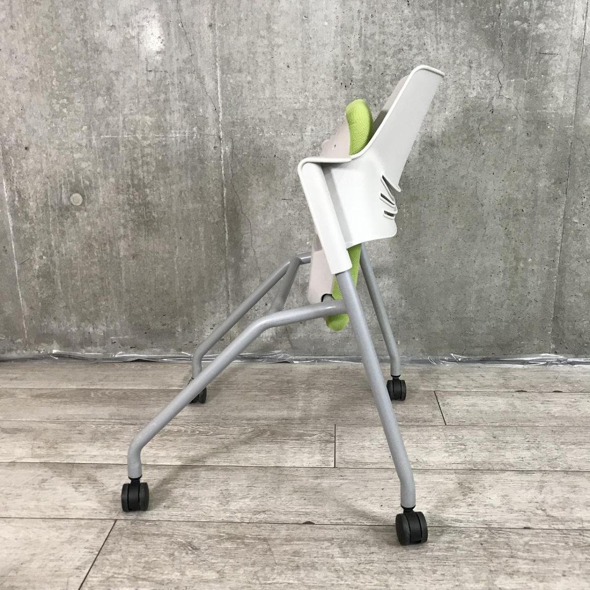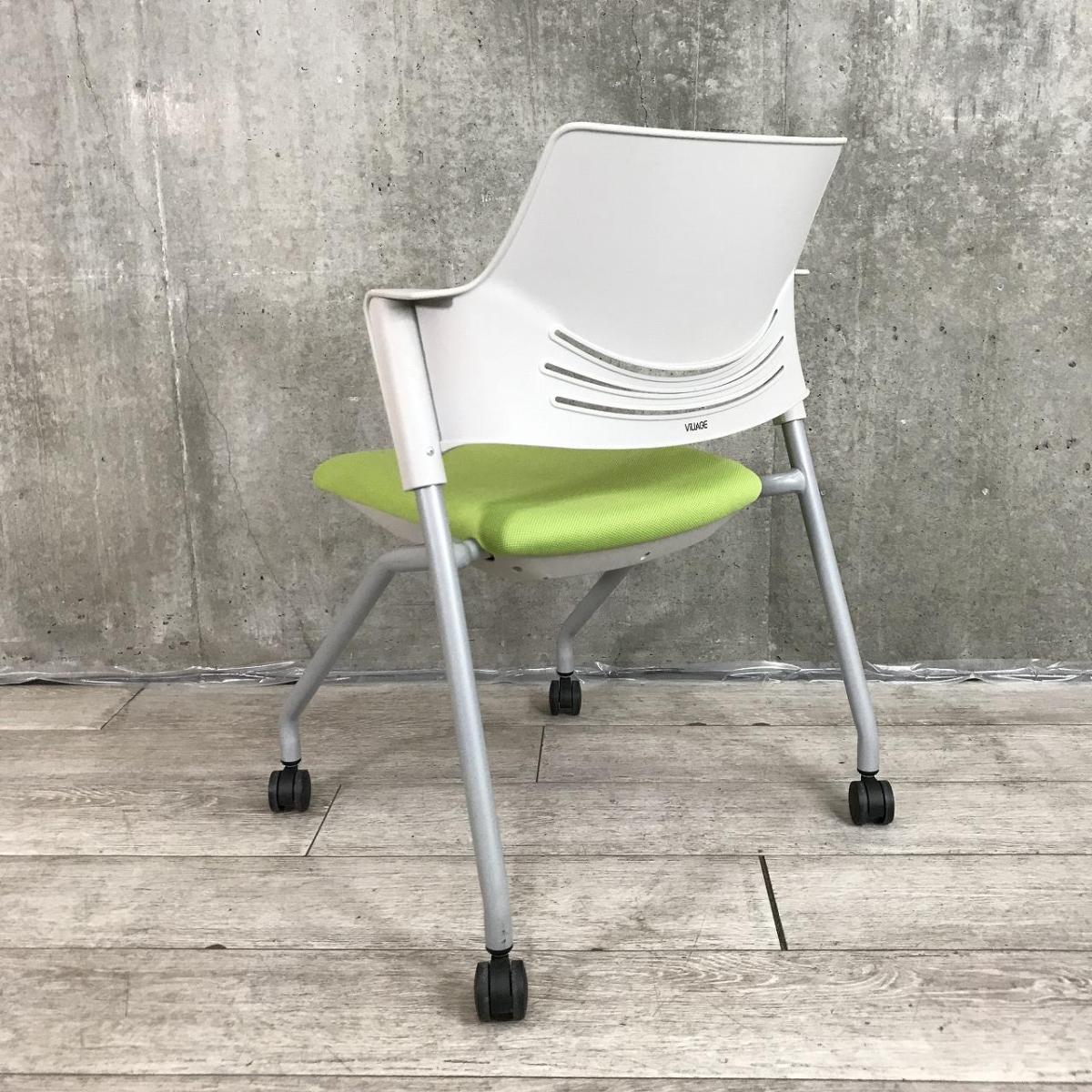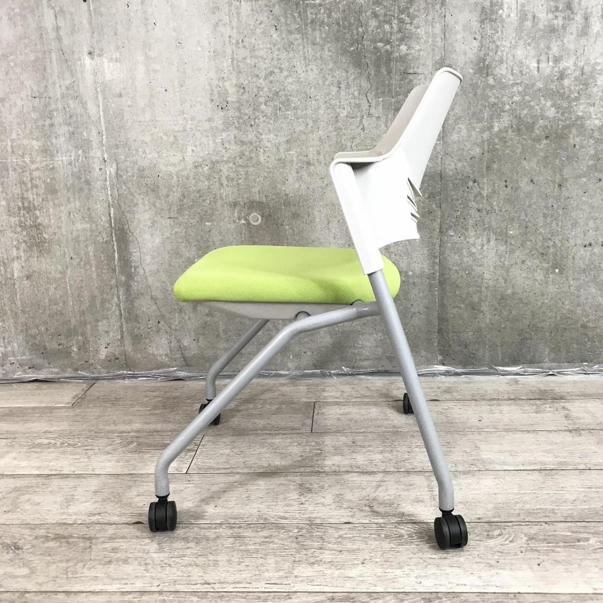 【背を包み込むような安定感のあるデザイン!ミーティングに最適!】■オカムラ(okamura)製 ビラージュ(VILLAGE) ネスティングチェア 肘付き ■キャスター付き ■グリーン×背面樹脂 ホワイト新古