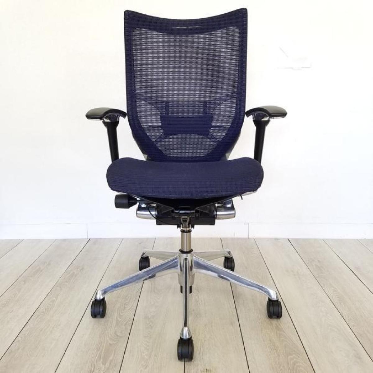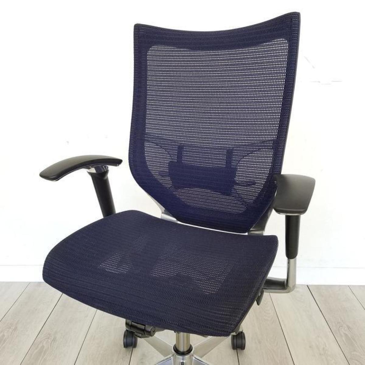 【状態良好】オカムラ製高級オフィスチェア オカムラ/バロン/ダークーブルー/座面メッシュ/可動肘/ポリッシュフレーム【TH】【倉庫在庫品】- 春日部・越谷店