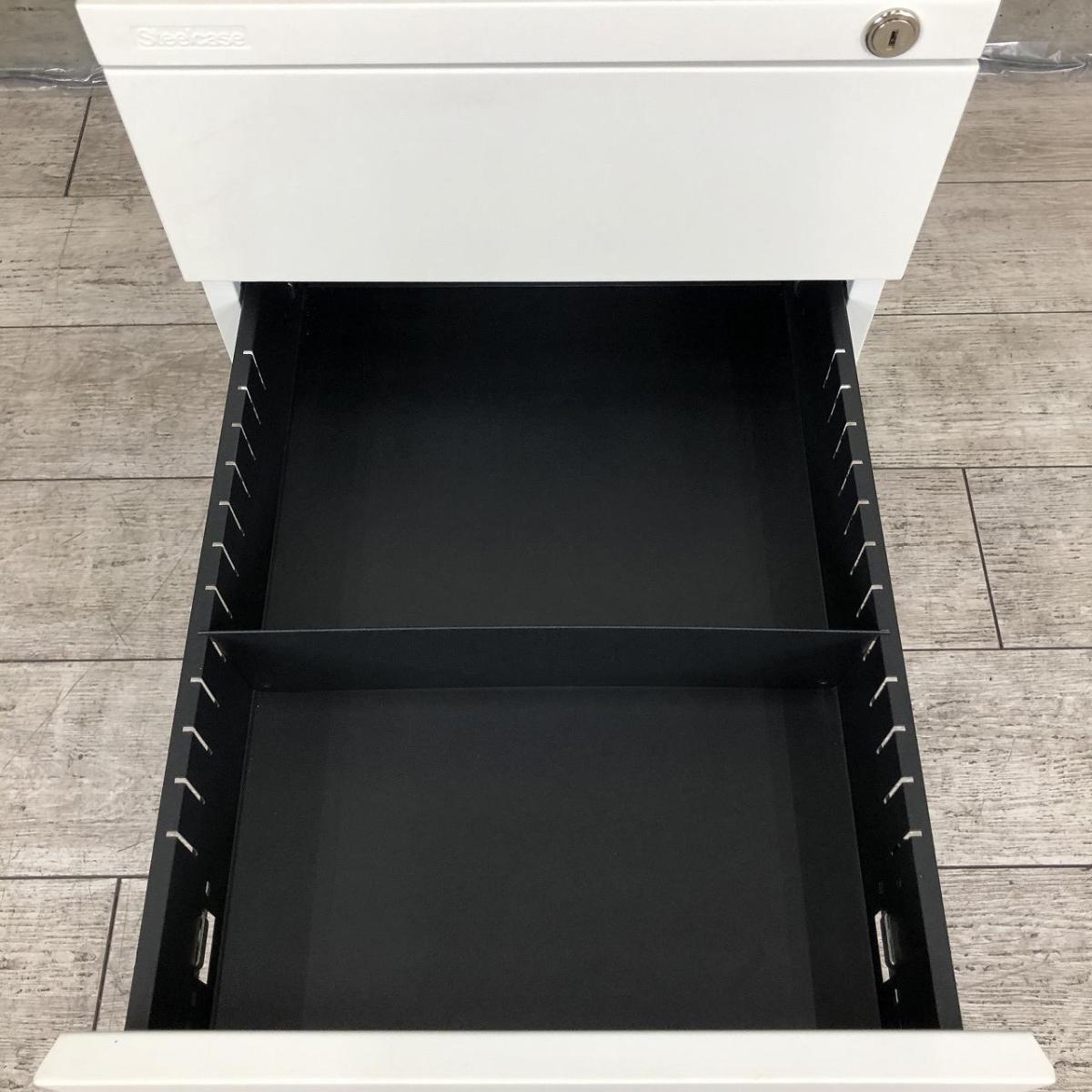 【洗練されたデザインの3段ワゴン!フリアドデスクや平机の収納力アップに!】■スチールケース(Steelcase)製 3段ワゴン デスクインワゴン H620㎜ ■ホワイト ■シリンダー錠【入替セールにつき20%OFF!】- つくば店
