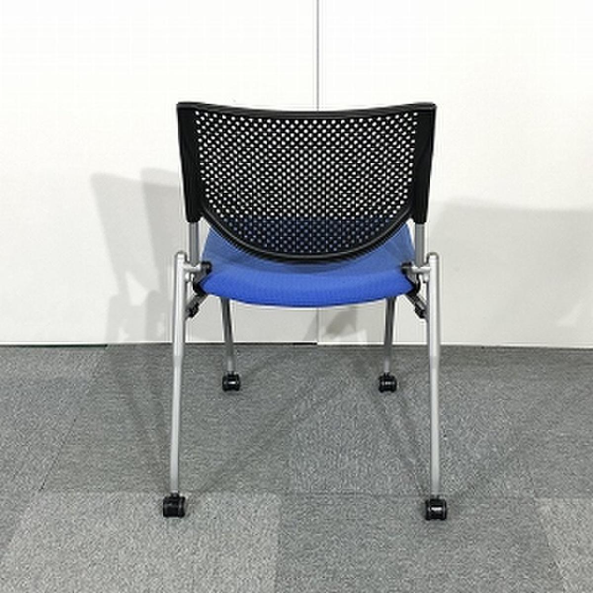 【会議室にピッタリ!コンパクト設計で収納がしやすい!】■オカムラ プロスタックシリーズ ネスティングチェア ミディアムブルー ■フレキシブルに使えるキャスター付!【在庫入替セール品!(本在庫限定価格)】
