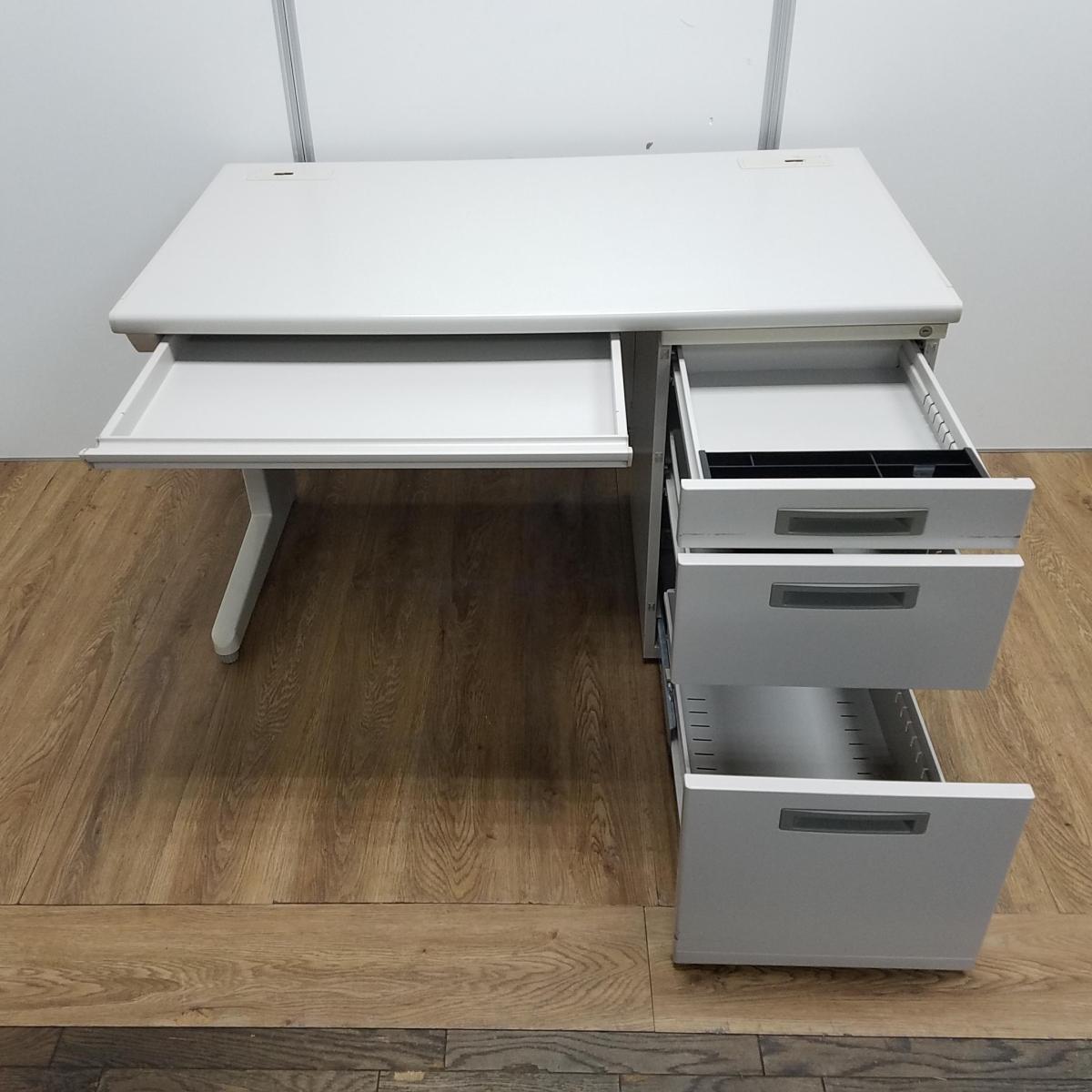 【1点限り為特価品】イナバ製 グレー W1200/D700/H700 定番サイズ シリンダー 収納も充実で使いやすい W1200片袖机!!- 大阪心斎橋店