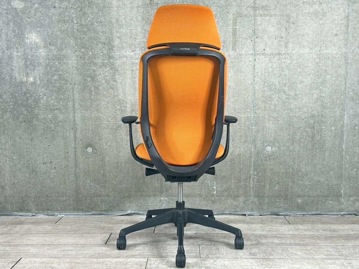 【在庫入替セール品!】【新感覚のオフィスシーティング!】■オカムラ(okamura) シルフィーチェア 肘付エクストラハイバック ■デザインアーム付 ■オレンジ×ブラックフレーム ※ヘッドレスト部分によれが見受けられるのでランクB品としてご案内!サーキュラーバリューCO2削減量の算出について