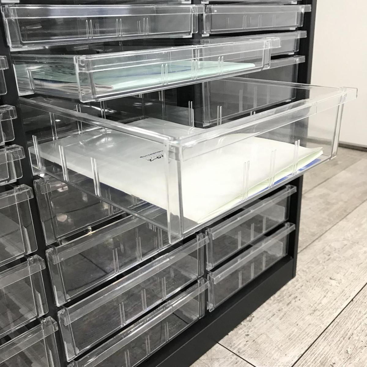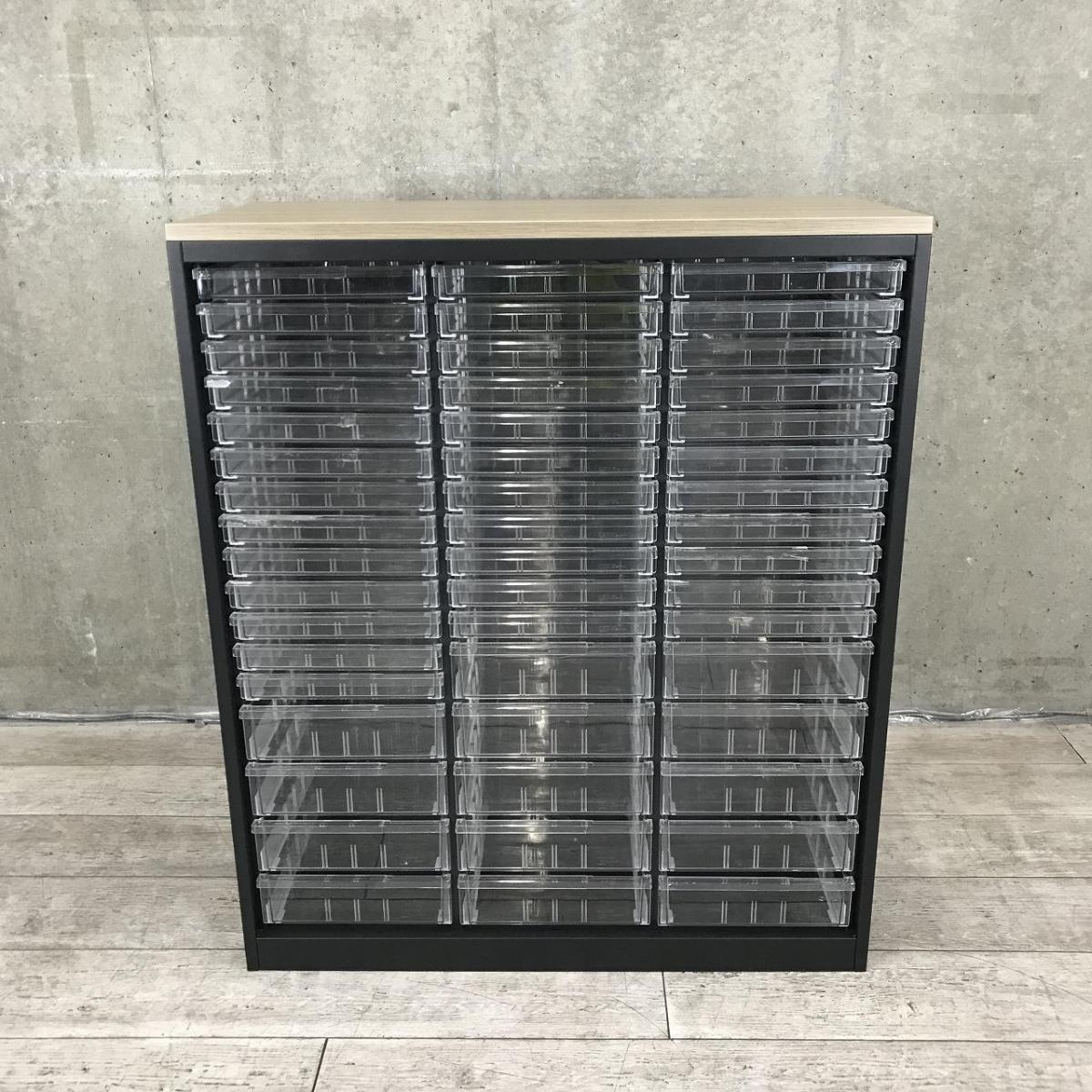 【書類・備品整理の必需品!】【珍しいクリトレが入荷!3列浅型35段+深型14段】■イトーキ(ITOKI) エス(eS)キャビネット クリスタルトレー ■3列(浅型35段+深型14段) ■ブラック/天板:ナチュラル【大容量!】- 足立・葛飾店