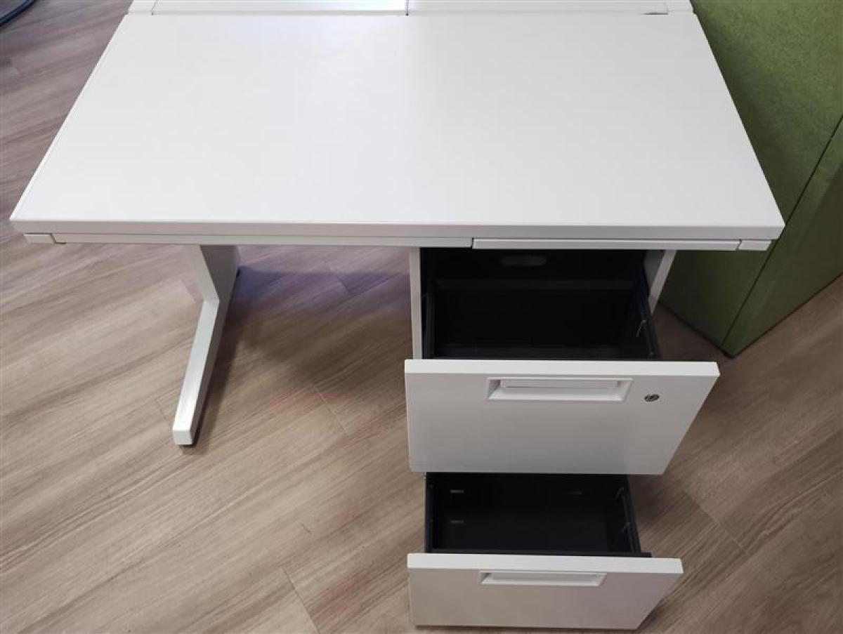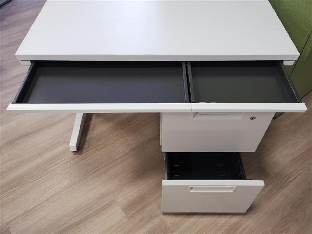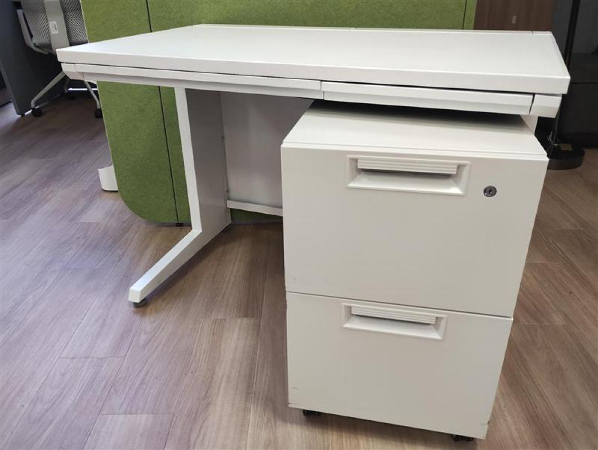 【T11】【商品入替のため、残り6台限り】オカムラ製 アドバンシシリーズ ホワイトカラー 4段収納で整理も完璧! コンパクトで清潔感のあるオフィス W1000片袖机!!