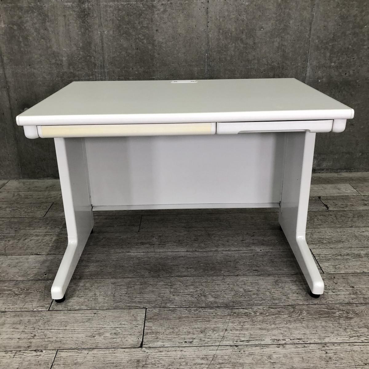 【定価約5万円】【今や希少品?!W1000mmのちょうどよいコンパクトサイズ!】■プラス(PLUS)製 LAシリーズ 平机 引き出し付 W1000㎜ ■ホワイト ■配線口 ※日焼けあり