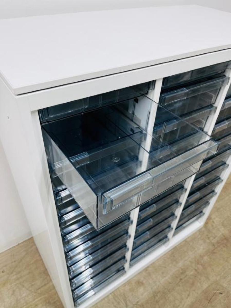【書類・備品整理の必需品!書類や備品のストックにピッタリ!※1段目のみ浅型仕様】オカムラ レクトライン クリスタルトレー 書類 引き出し 透明 ケース ローキャビネット 整理 中古家具 オフィス家具 福岡 九州最大級《オフィスバスターズ福岡博多店は、福岡を拠点として、日本全国へ中古オフィス用品・オフィス家具を提供しております》