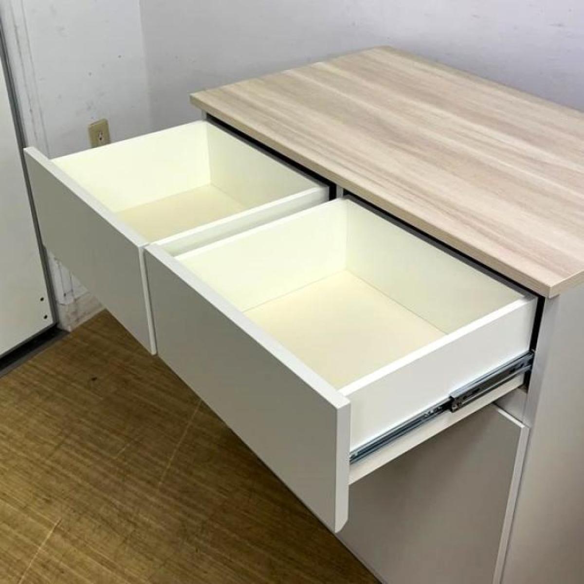【在庫入替セール】【2023年製の状態良好品】イトーキ ノットワークシリーズ キッチンキャビネット(ロータイプ) 本体グレーホワイト×天板アモナアカシア- 名古屋千種店