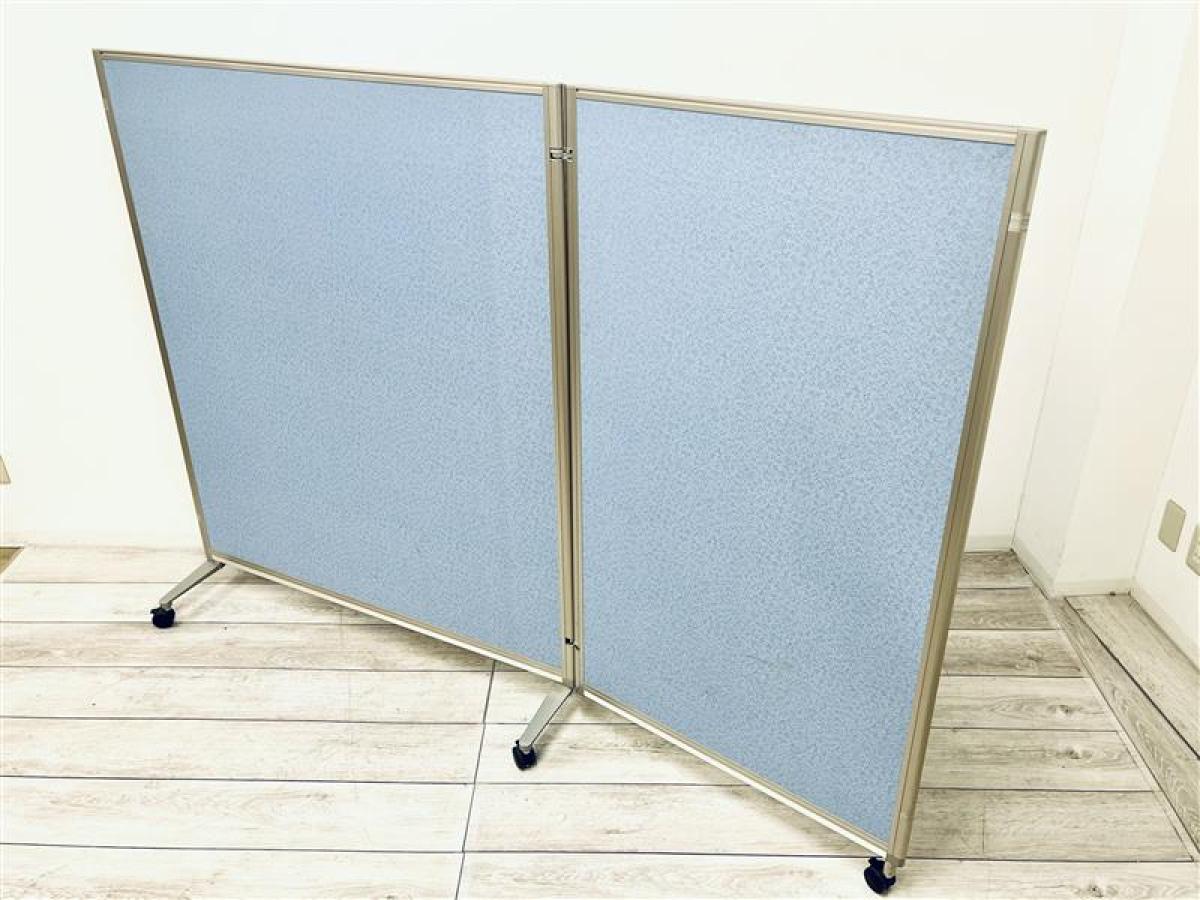 【定価約17万円】【キャスター付き折り畳みローパーティション】■イトーキ/リンキー ■ローパーティション ■ライトブルー ■キャスター付き ※パーテーション連結部分一部破損あり- 在庫数