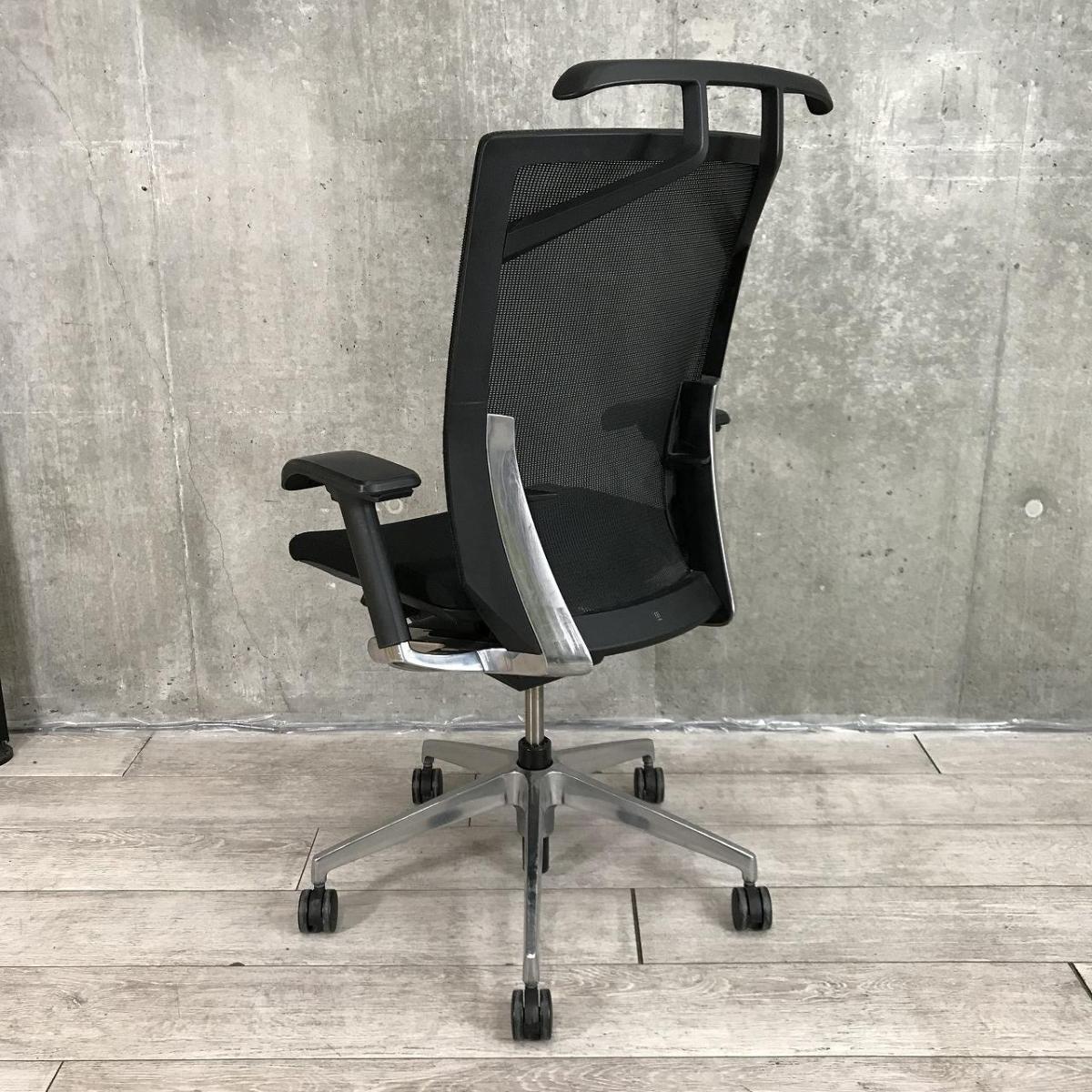 【シャープかつシンプルなデザイン!大きな背面が体にフィット!通気性がよく長時間でも快適な高級チェア!】■イトーキ(ITOKI)製 ヴェント(Vent)チェア 肘付き ハイバック 背面メッシュ ■可動肘 ■ランバー付き ■ブラック