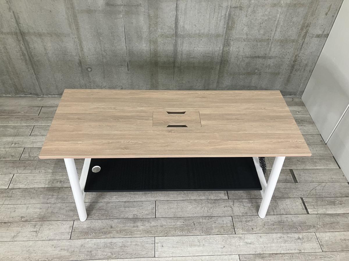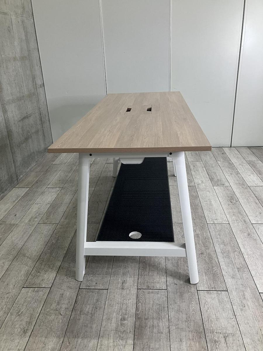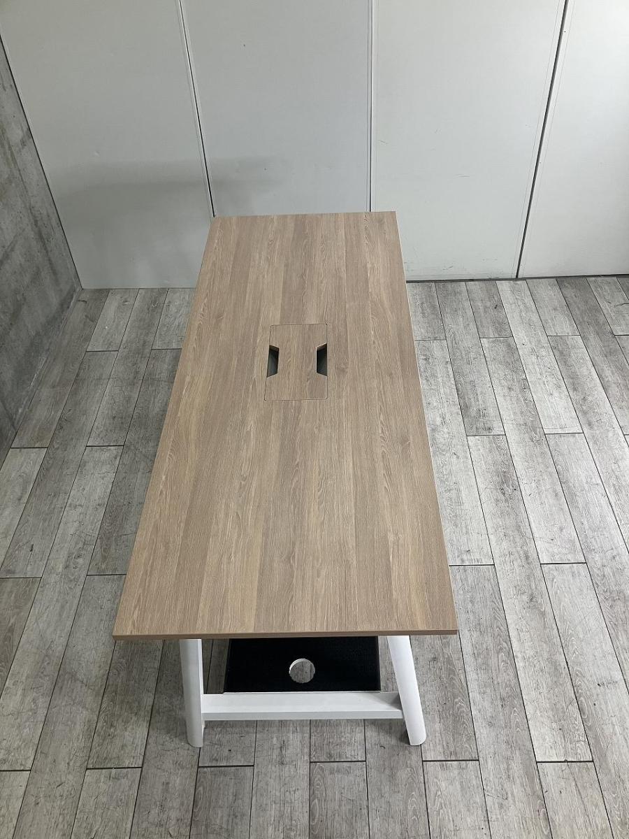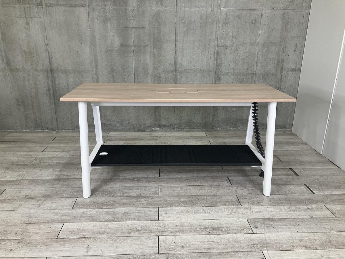 【木目ナチュラル天板がオシャレなテーブル!足元に板付でちょっとしたものをおいておけます!】■スチールケース(Steelcase)製 角テーブル ミーティングテーブル W2000×D800×H960㎜ ■配線カバー付 ■天板:木目ナチュラル/脚:ホワイト ABW- なんば日本橋店