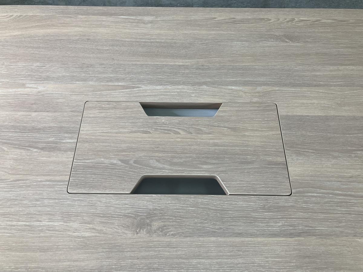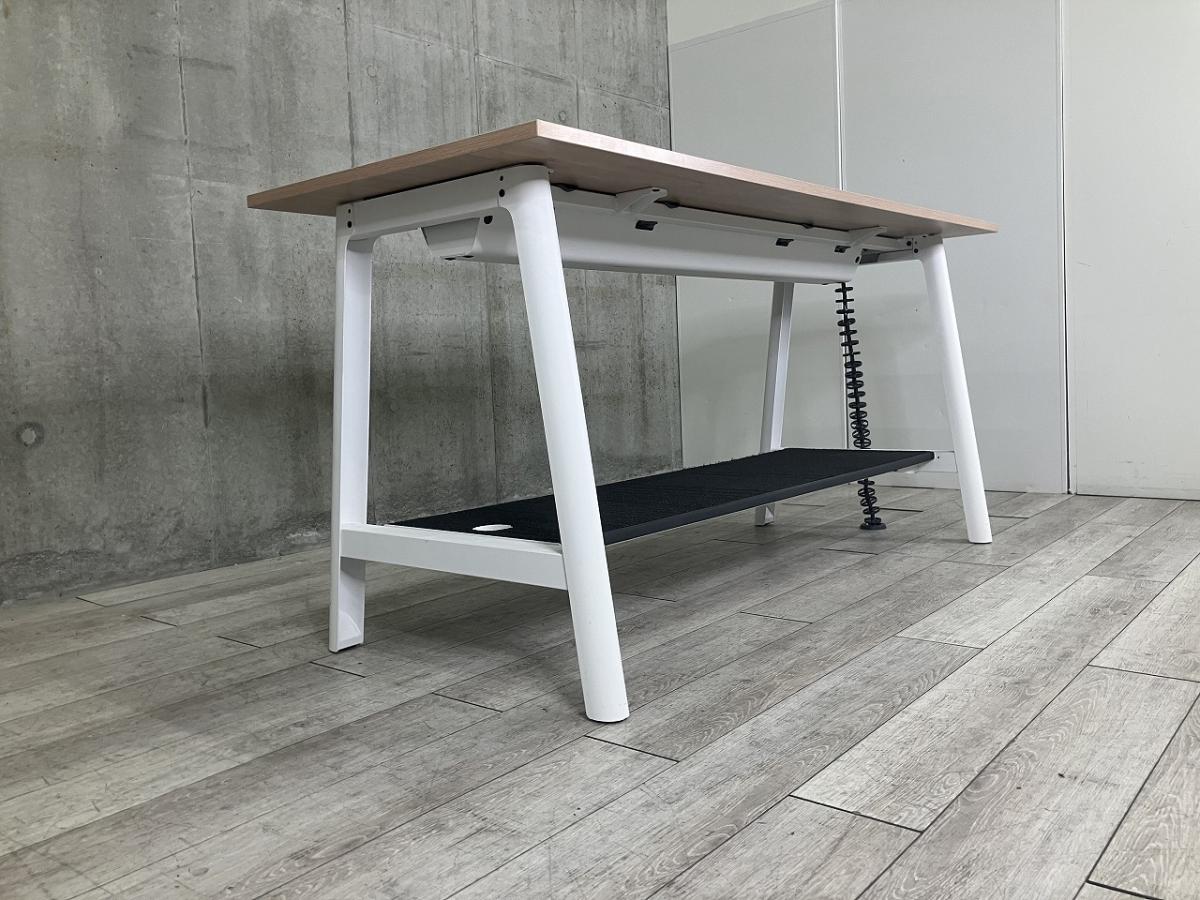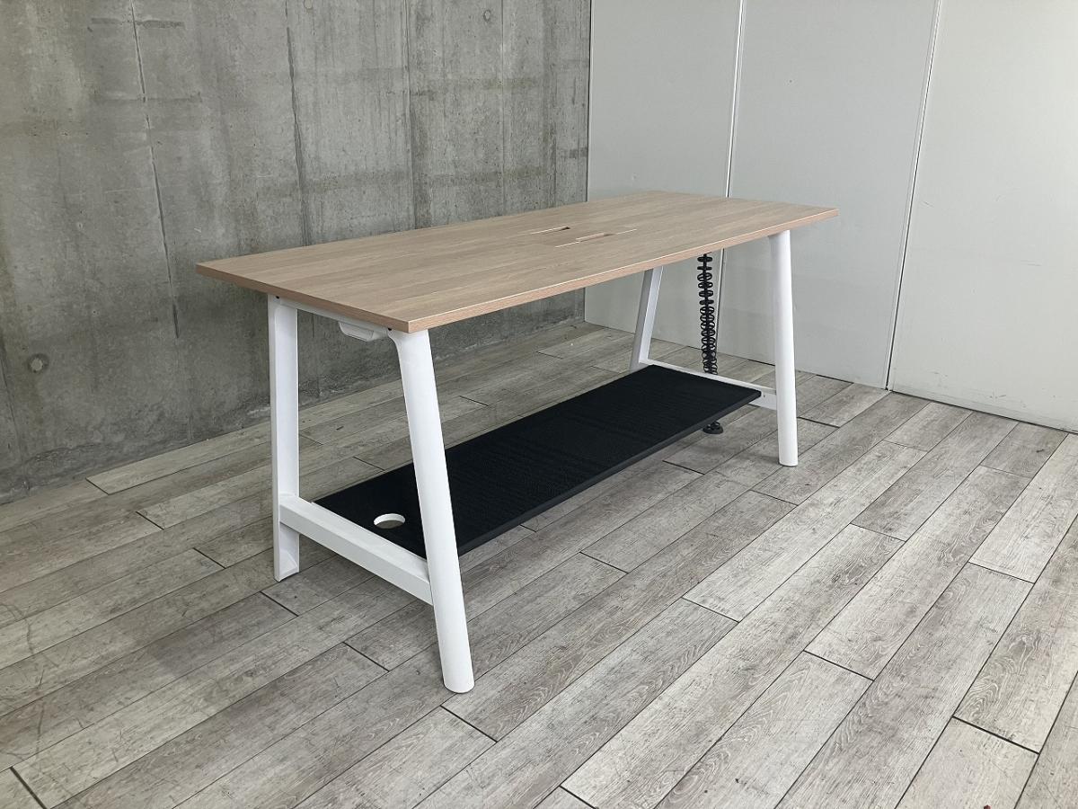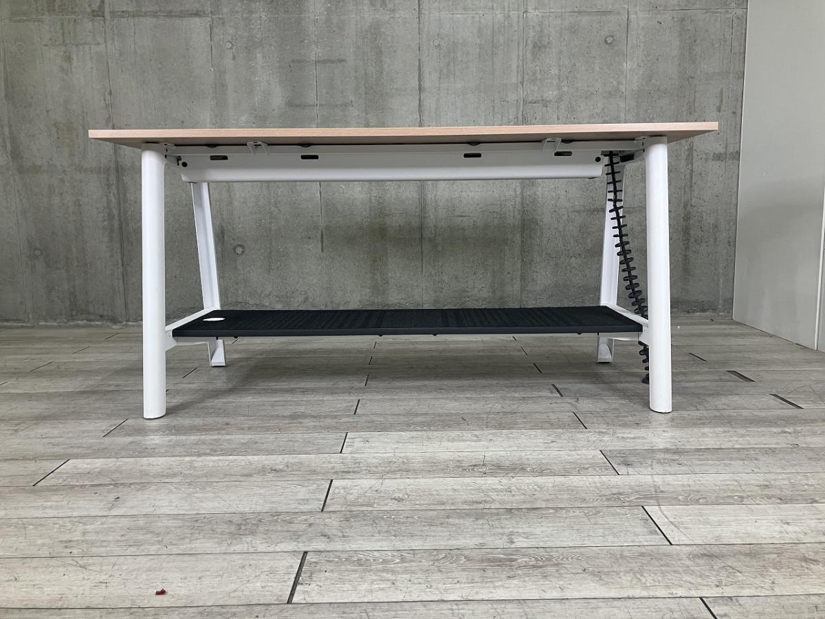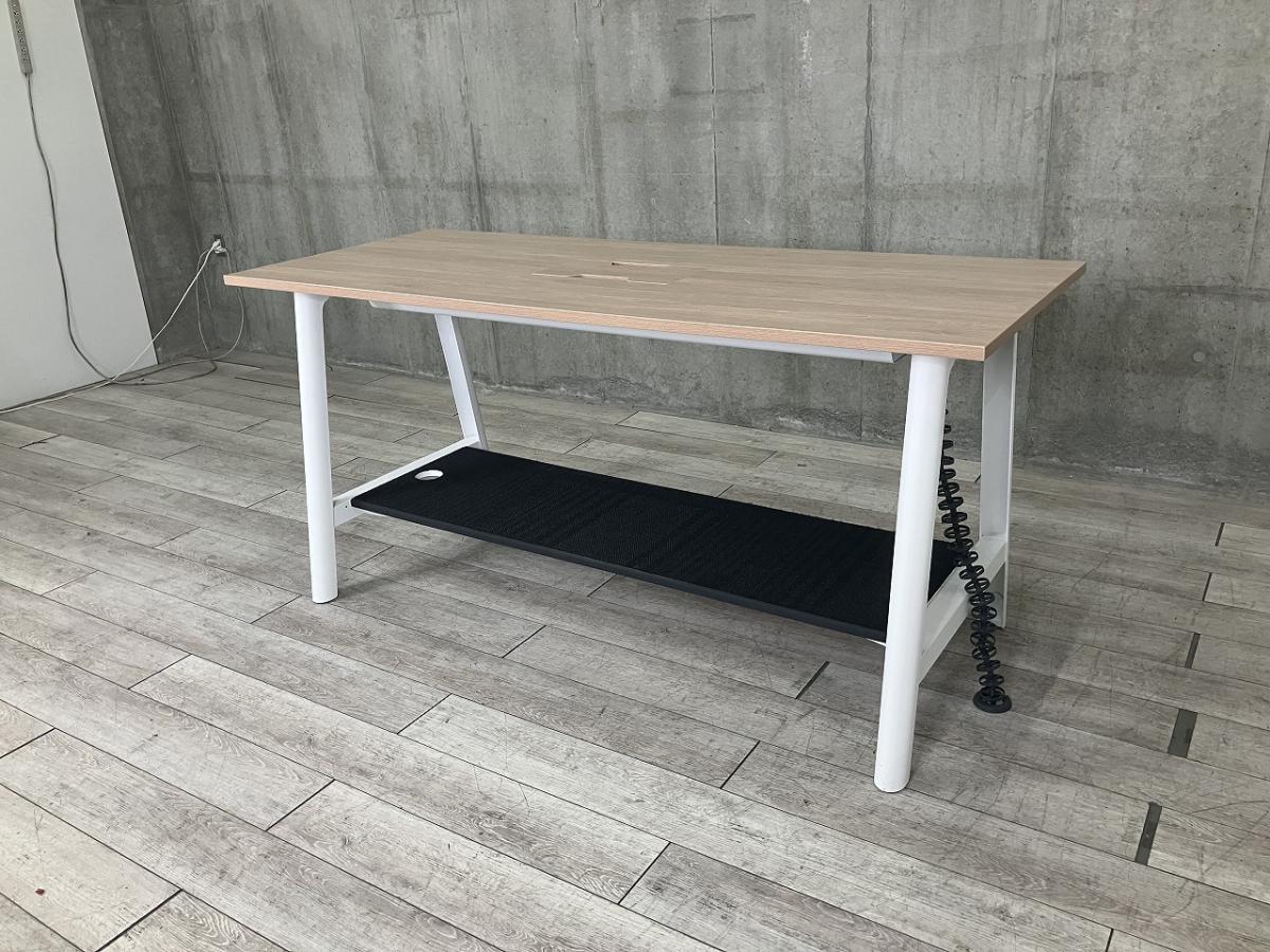 【木目ナチュラル天板がオシャレなテーブル!足元に板付でちょっとしたものをおいておけます!】■スチールケース(Steelcase)製 角テーブル ミーティングテーブル W2000×D800×H960㎜ ■配線カバー付 ■天板:木目ナチュラル/脚:ホワイト ABW- なんば日本橋店
