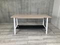 木目ナチュラル天板とホワイト脚の組み合わせがオシャレなテーブルです。