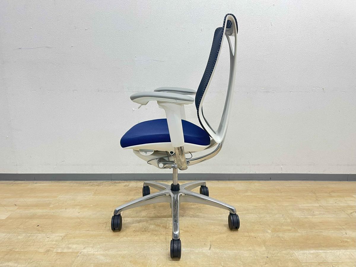 【前傾チルト付!流れるような美しいフォルムの最高級メッシュチェア!】■オカムラ(okamura)製 Sabrina(サブリナ) ハイバック 肘付き ■可動肘 ■背面メッシュ:アクアブルー 座面:ブルー ホワイトフレーム