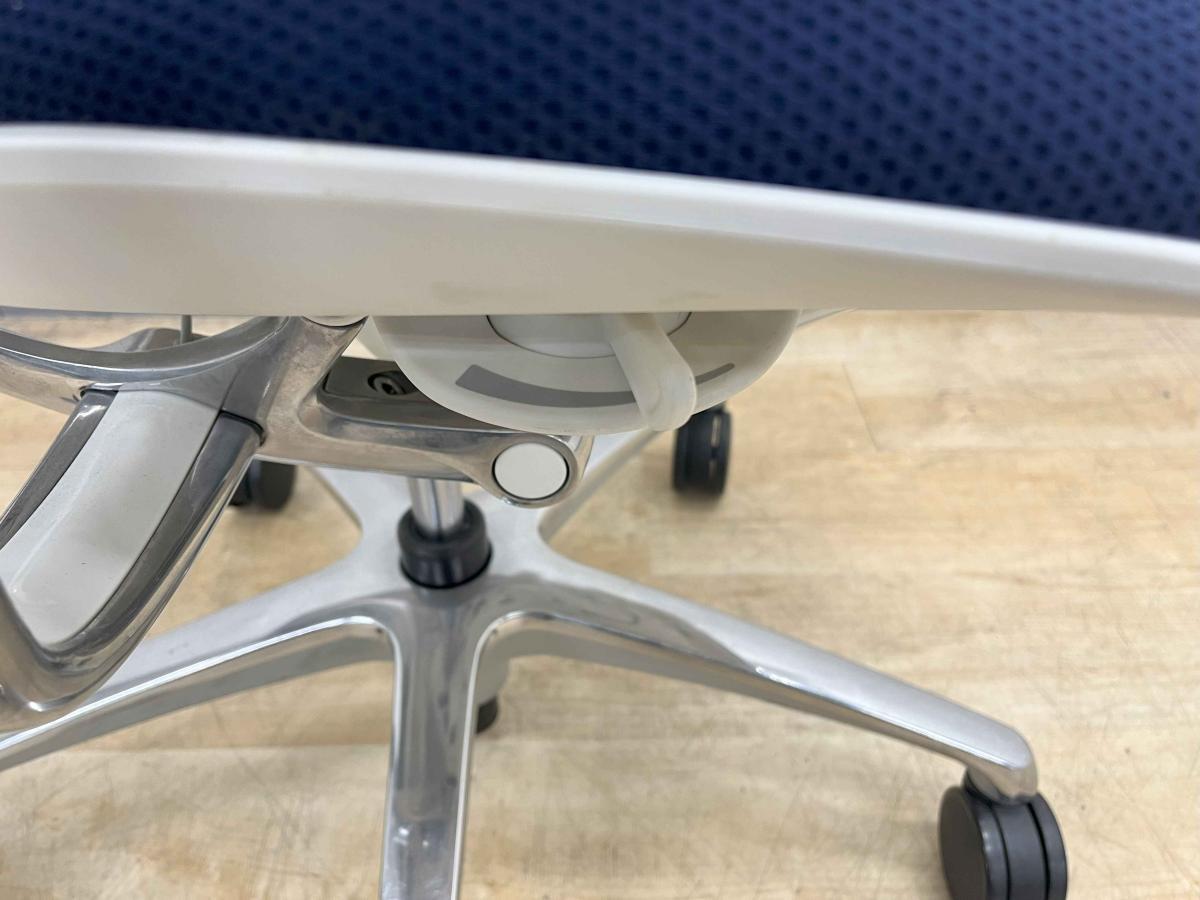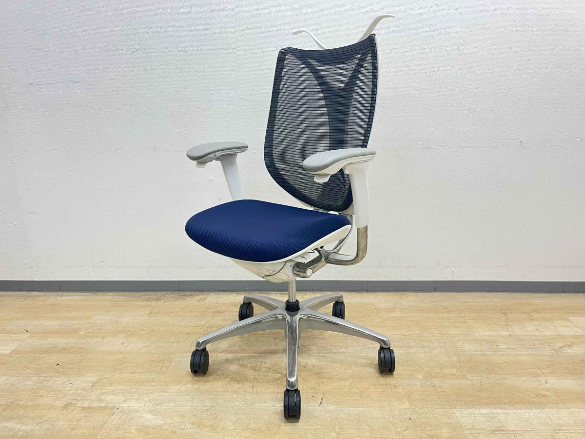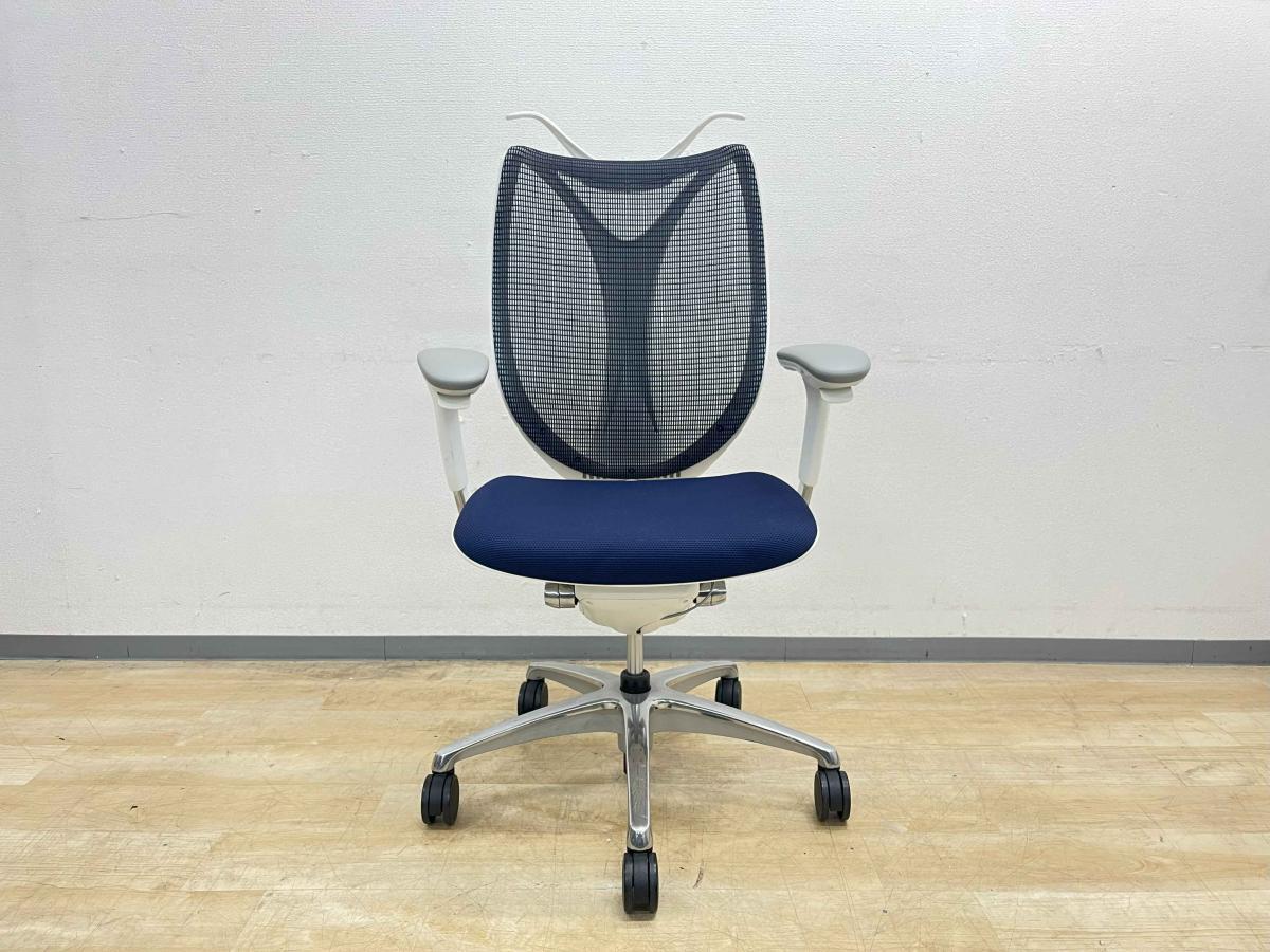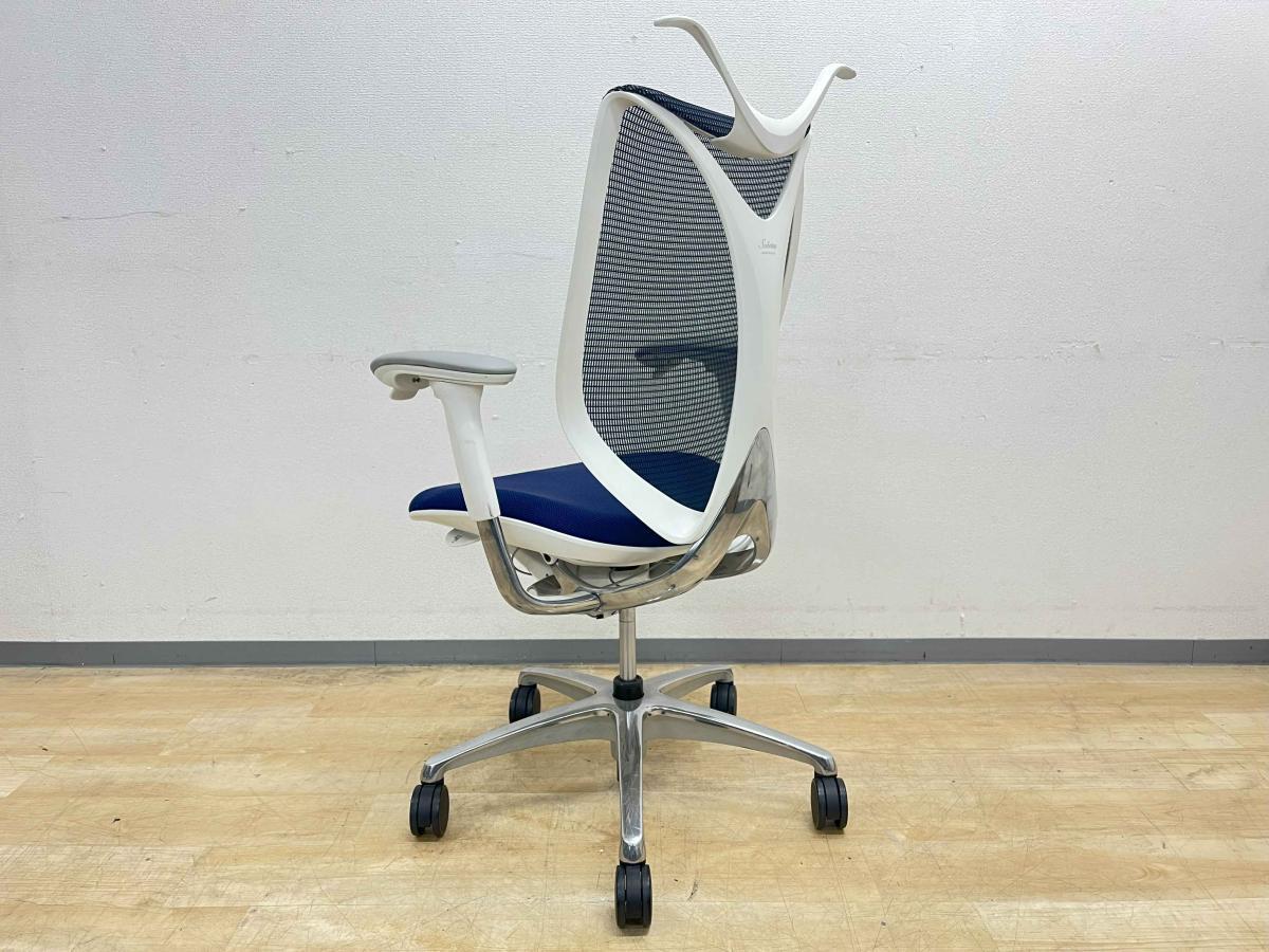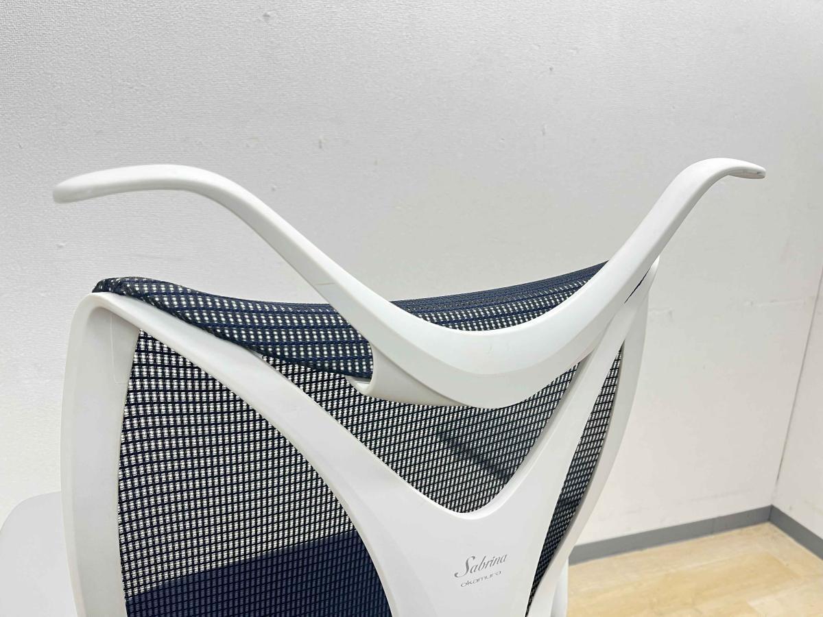 【前傾チルト付!流れるような美しいフォルムの最高級メッシュチェア!】■オカムラ(okamura)製 Sabrina(サブリナ) ハイバック 肘付き ■可動肘 ■背面メッシュ:アクアブルー 座面:ブルー ホワイトフレーム