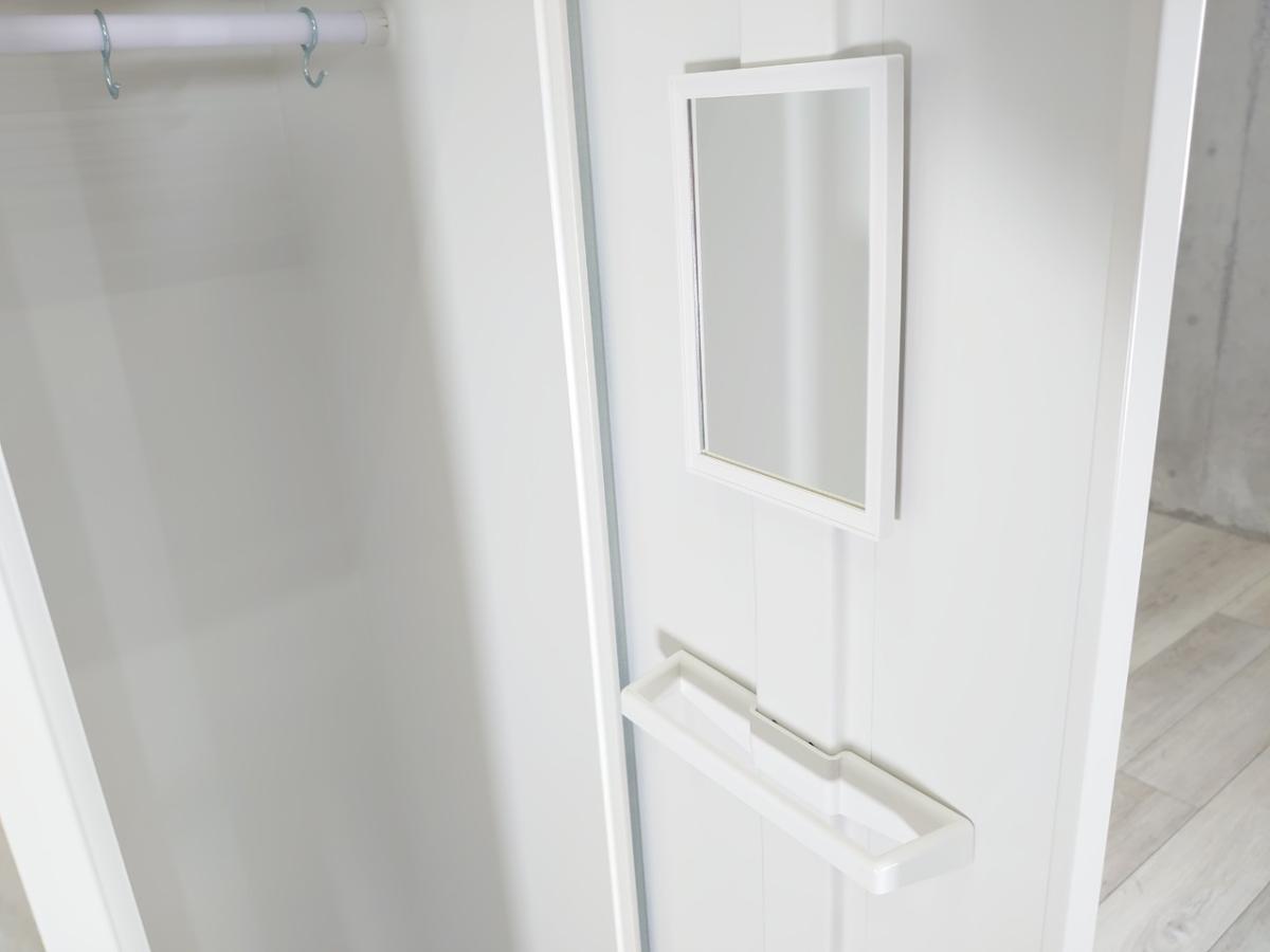 扉に鍵を掛けて保管することで、脱いだ服が人目にさらされなくなり、プライバシーの確保に繋がります。
