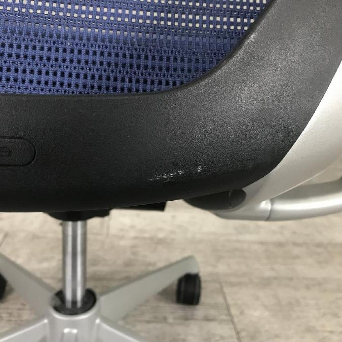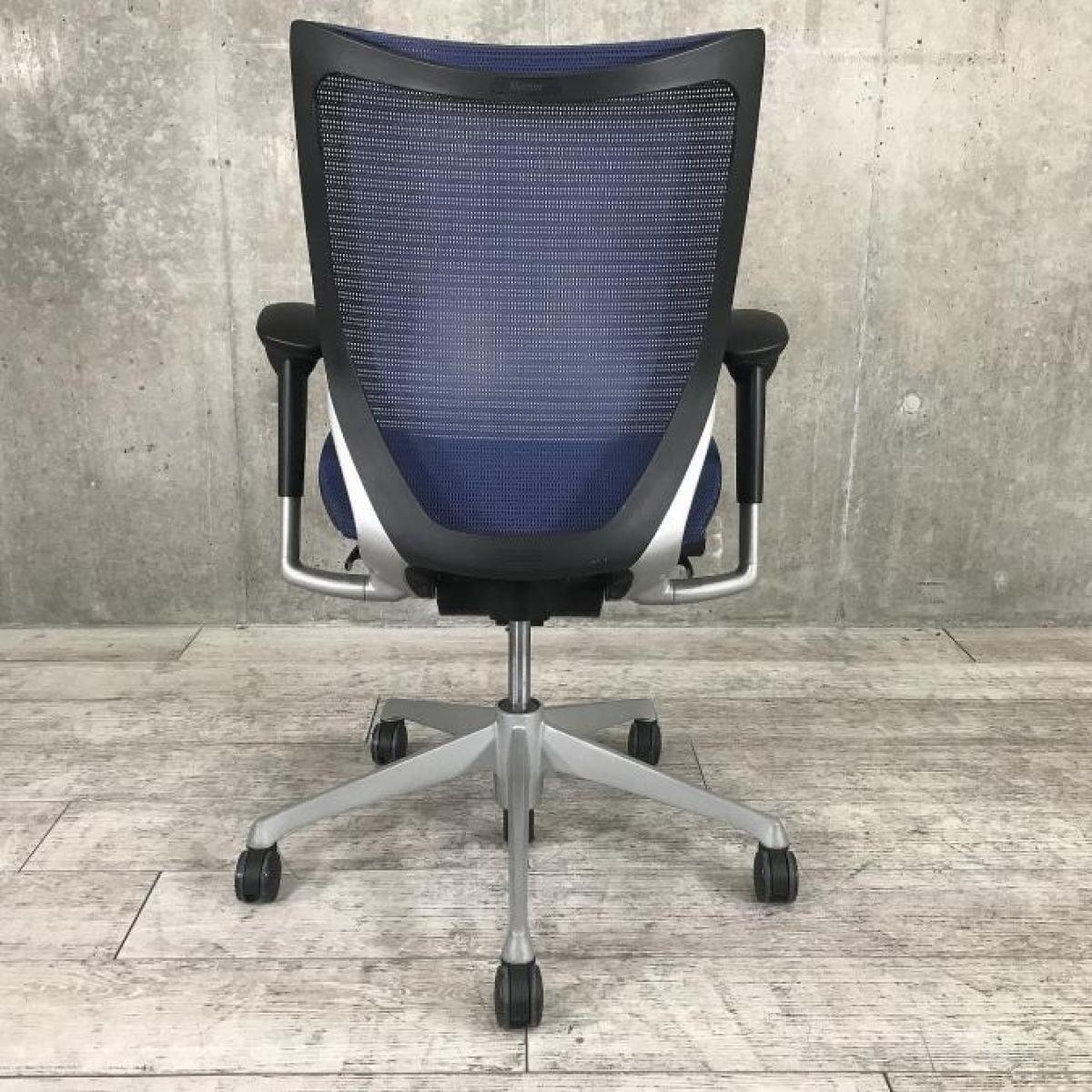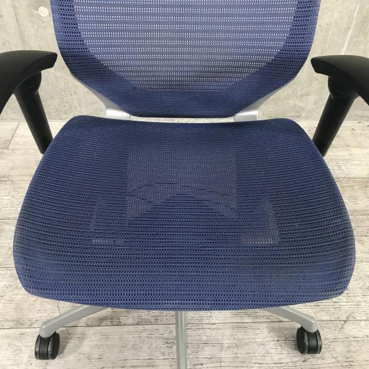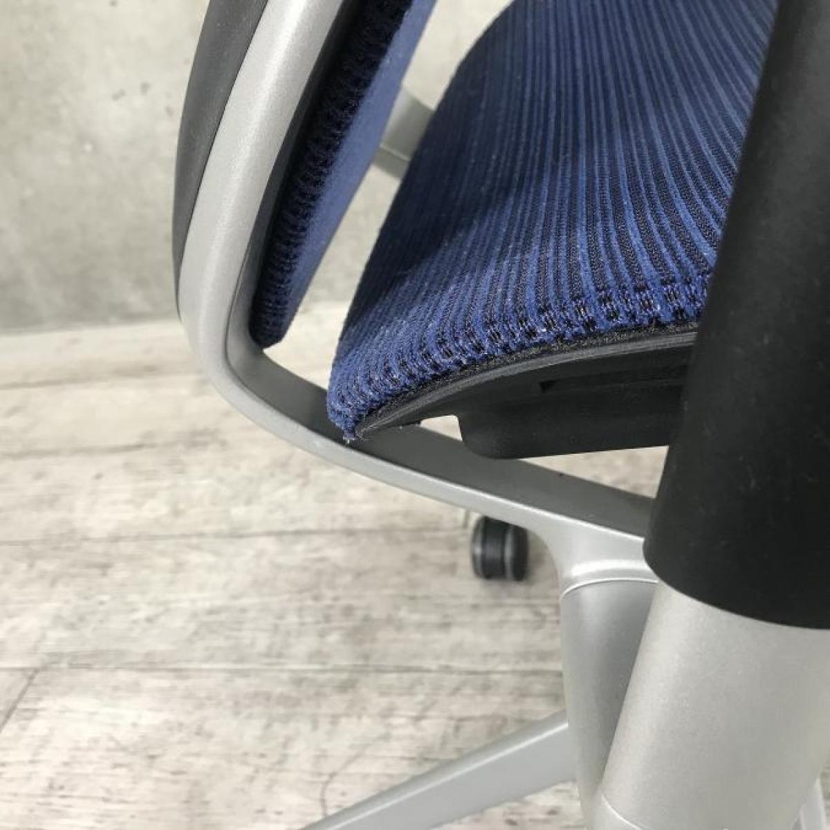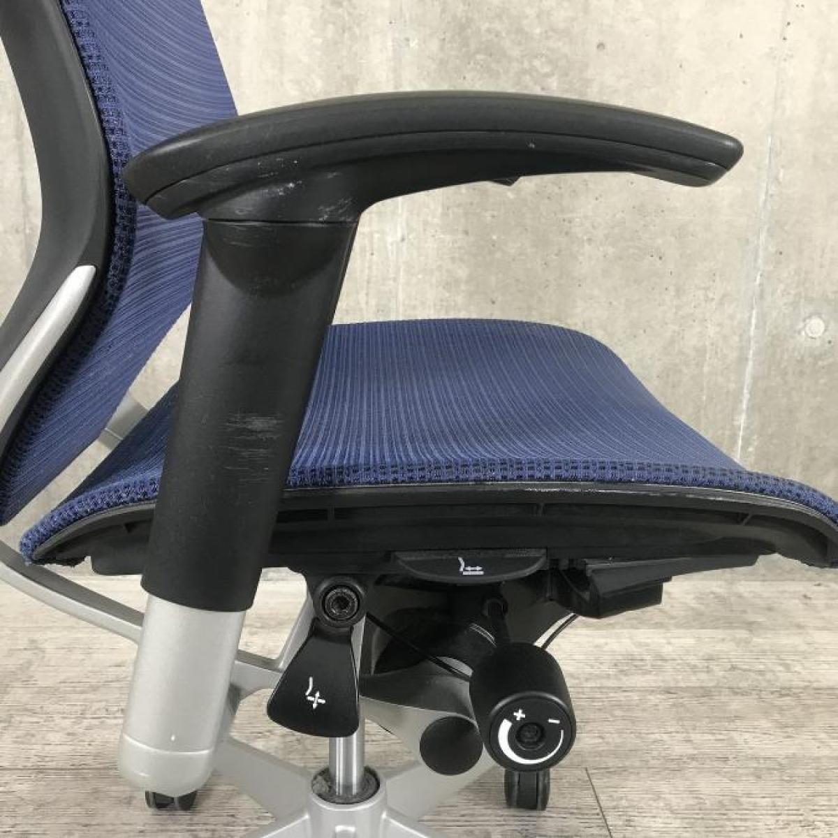 【座面が大人気!国産メッシュチェアの代表格!】■オカムラ(okamura)製 バロン(Baron)チェア ローバック 肘付き ■背面メッシュ ■固定肘 ■色:ダークブルー ■ハンガー付き