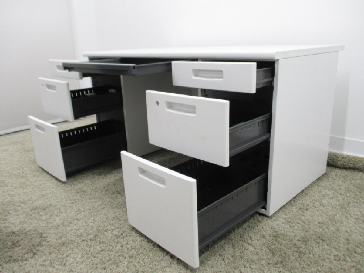 コクヨ ピクサ 両袖机 ホワイト シリンダー錠 鍵付き ※引き出し内のペントレー・仕切りが全て欠品しています- 名古屋千種店