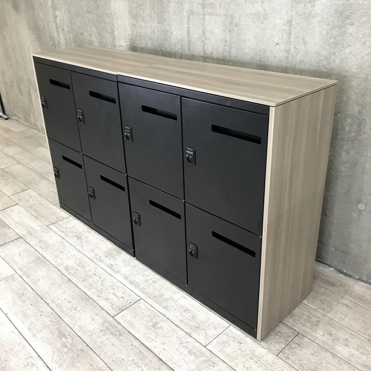 【フレキシブルな働き方に対応するメールロッカー!並べて使えば収納力UP!】■オカムラ(Okamura)製 8人用パーソナルロッカー ブラック メール投函口付 ダイヤル錠 中古 福岡 博多 天神 九州最大級- 福岡博多店