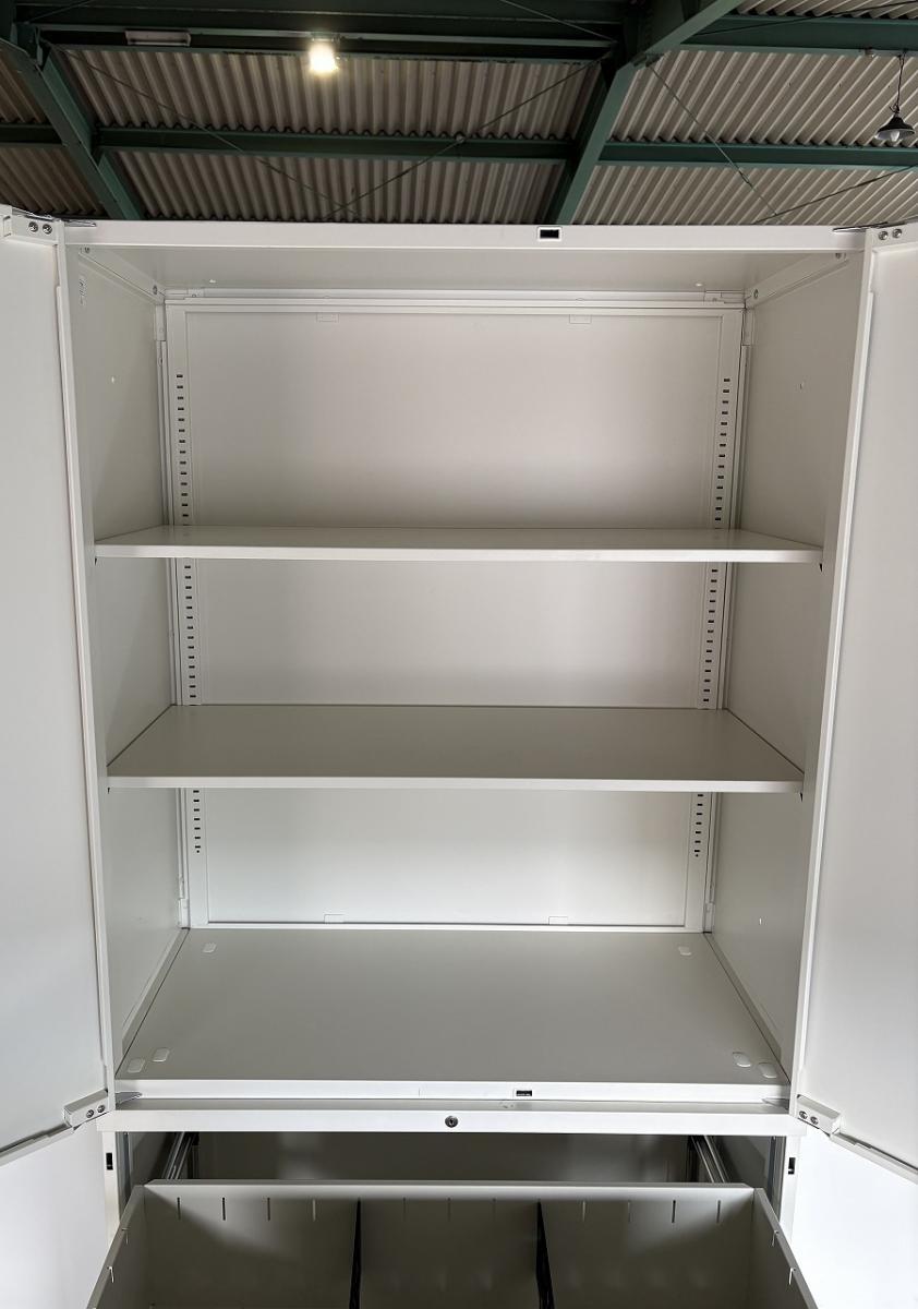 【残り2台!】【大容量収納で人気の書庫セット!】■アイリスチトセ(IRIS CHITOSE) 両開き+3段ラテラル 書庫セット ハイキャビネット ■ホワイト ■シリンダー錠- 神戸・三宮店