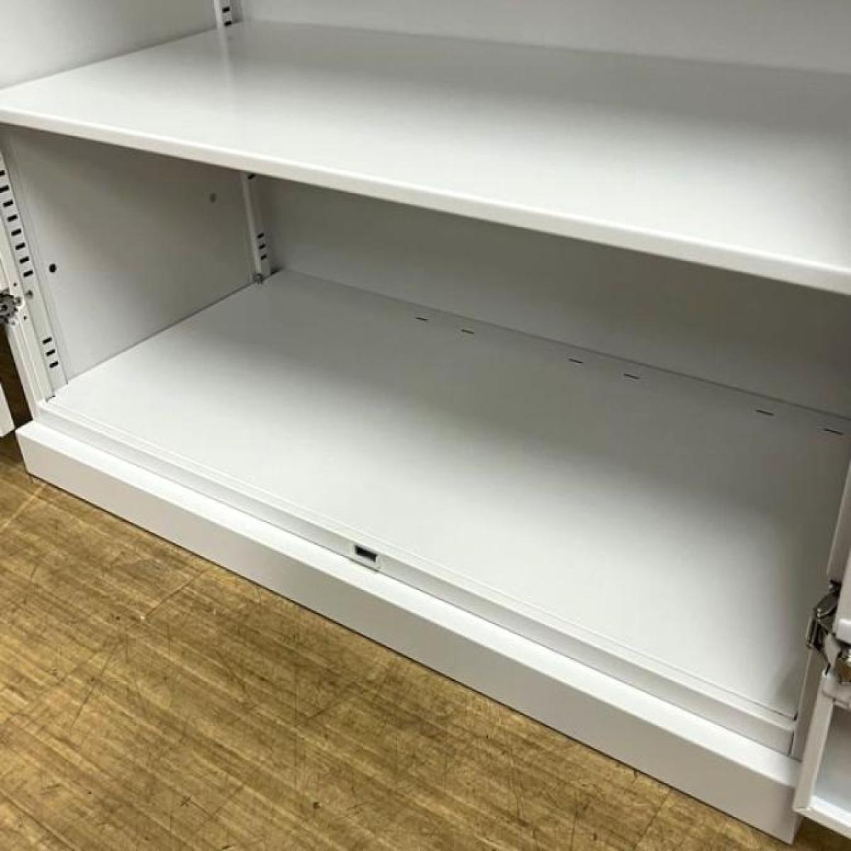 【4台限定!】【少し背の高い両開き書庫!ナチュラル調の天板付きがうれしい!】■イトーキ(ITOKI) eSシリーズ 両開き ローキャビネット H1270mm ■ナチュラル木目調天板付き ■ホワイト ■シリンダー錠在庫がある店舗一覧