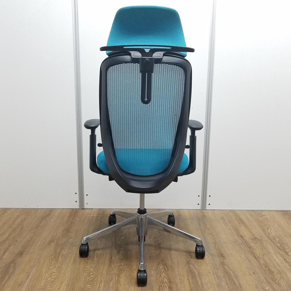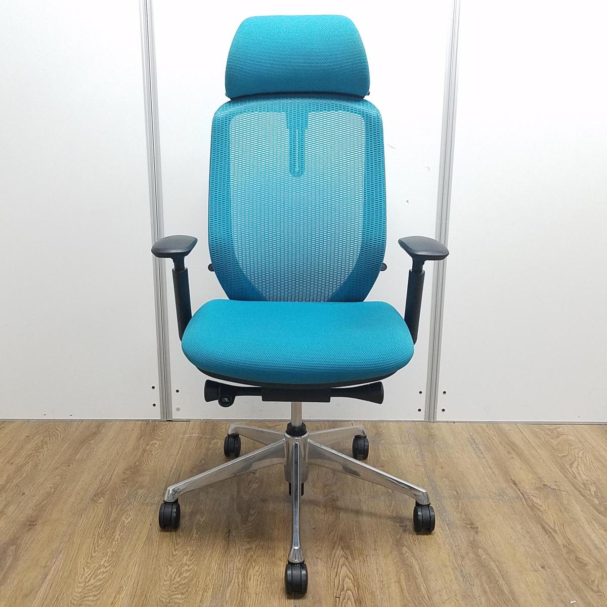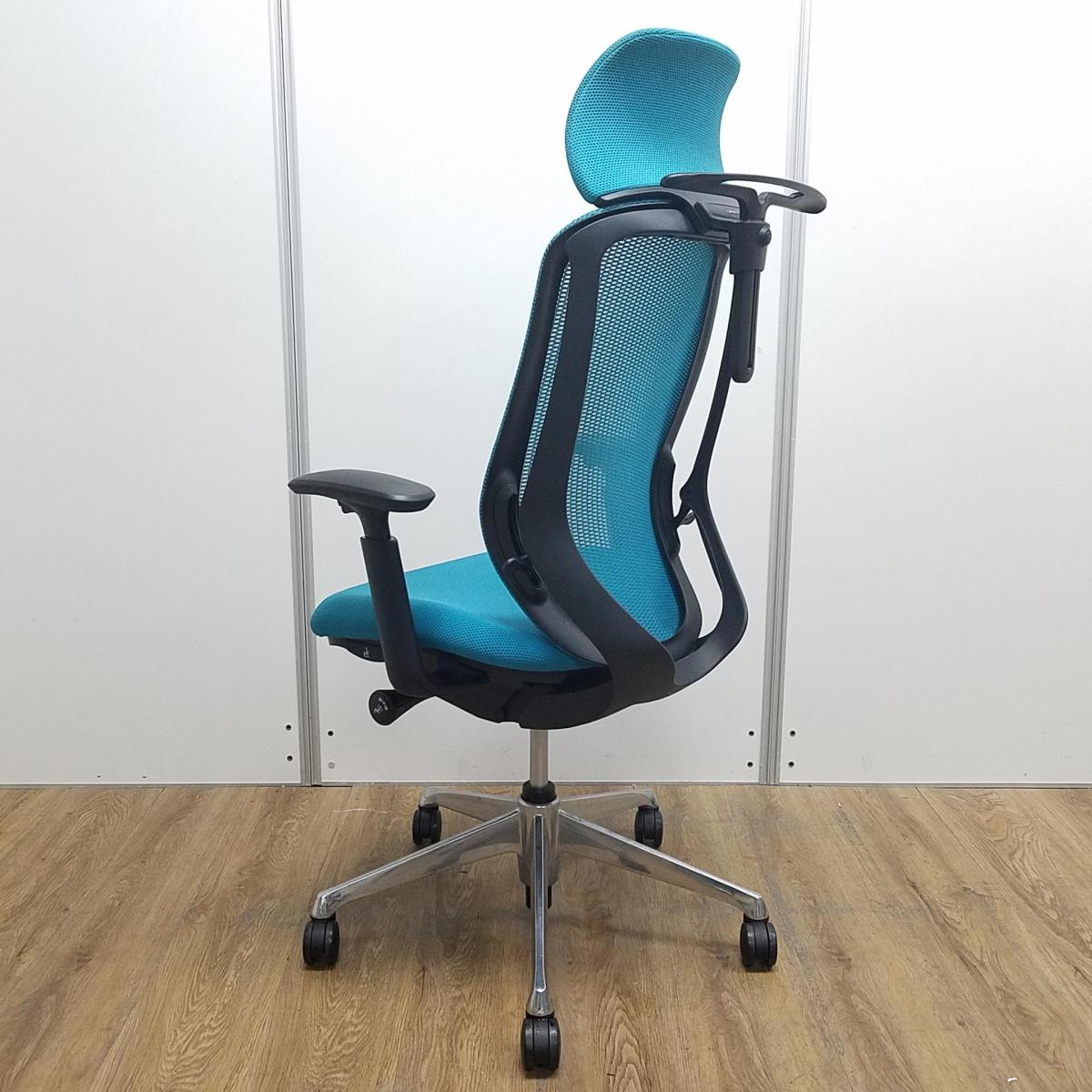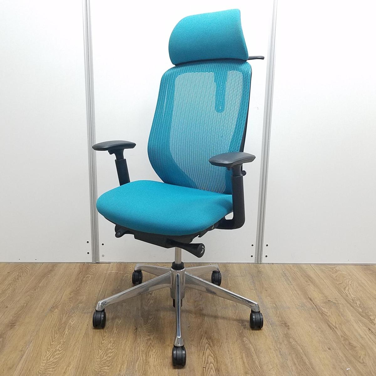 オカムラ製 シルフィーシリーズ ブルーグリーン コートハンガー ヘッドレスト ポリッシュ脚 アジャストアーム※可動肘 肘付きハイバックチチェア!!- 京都東寺店
