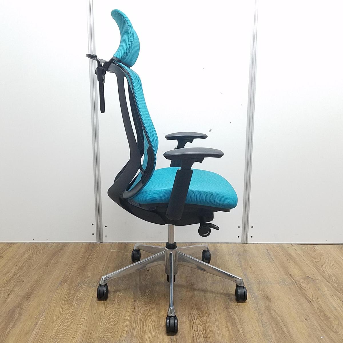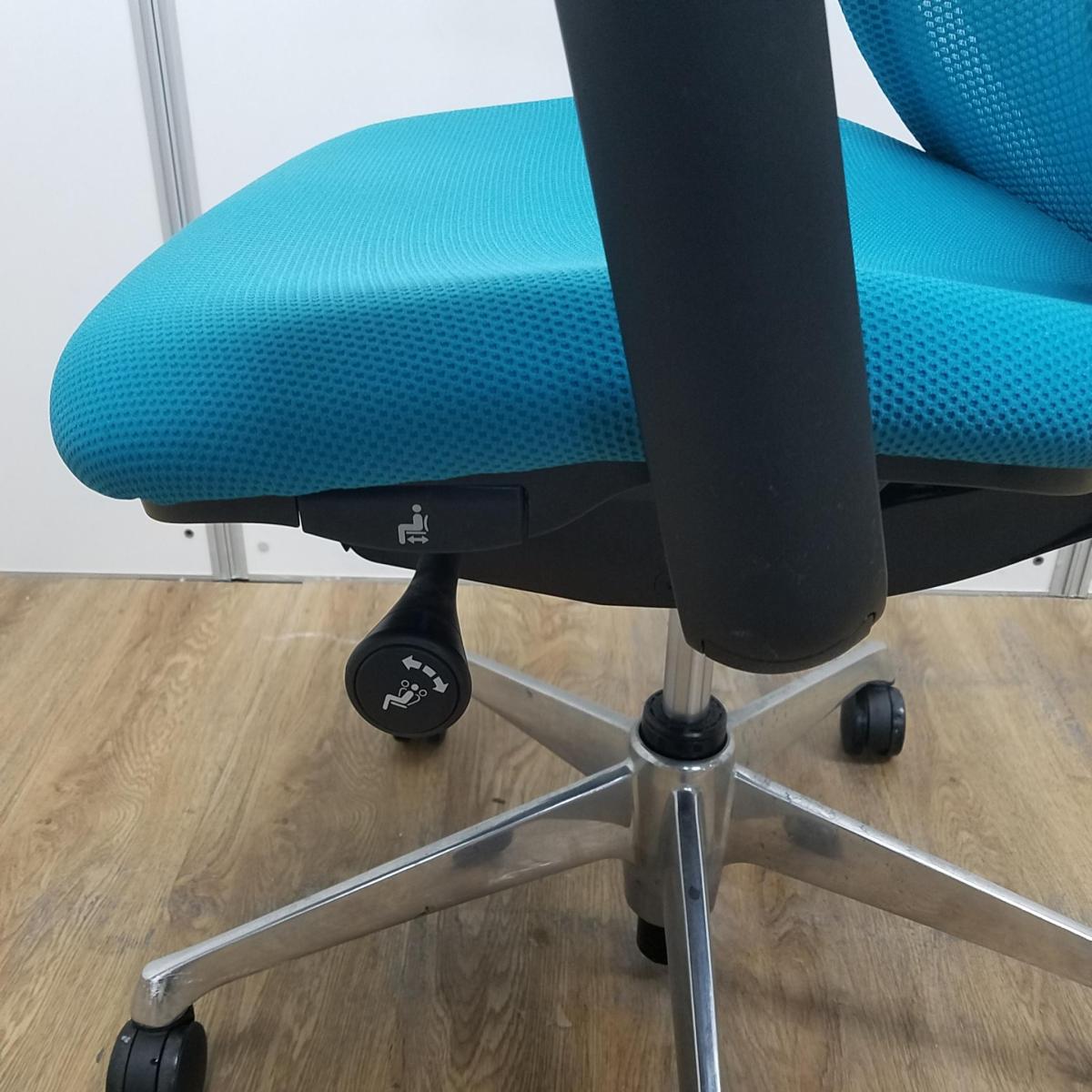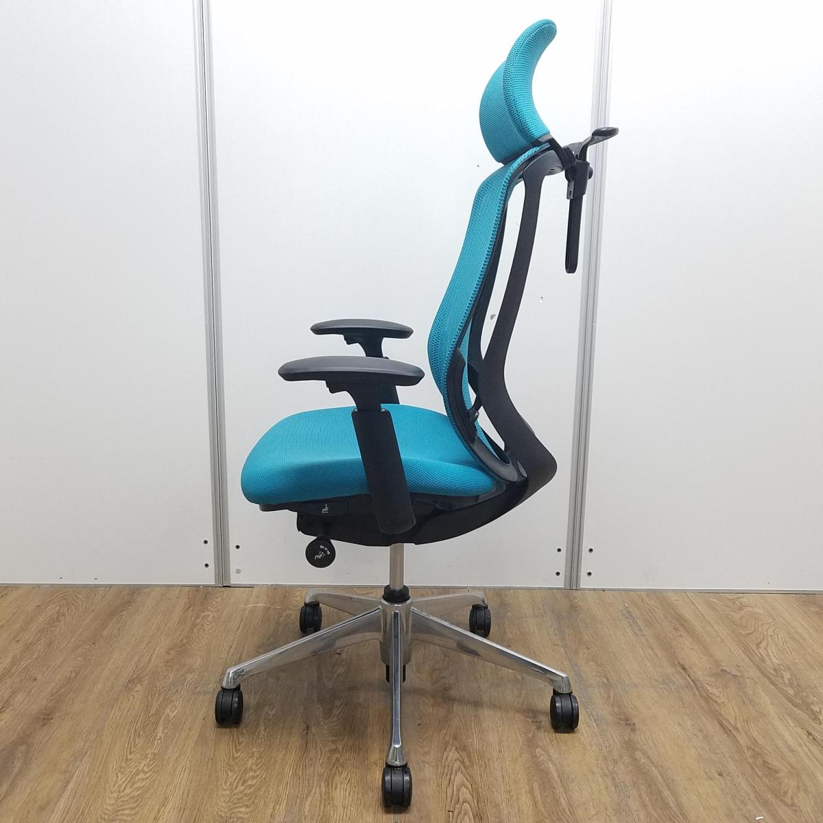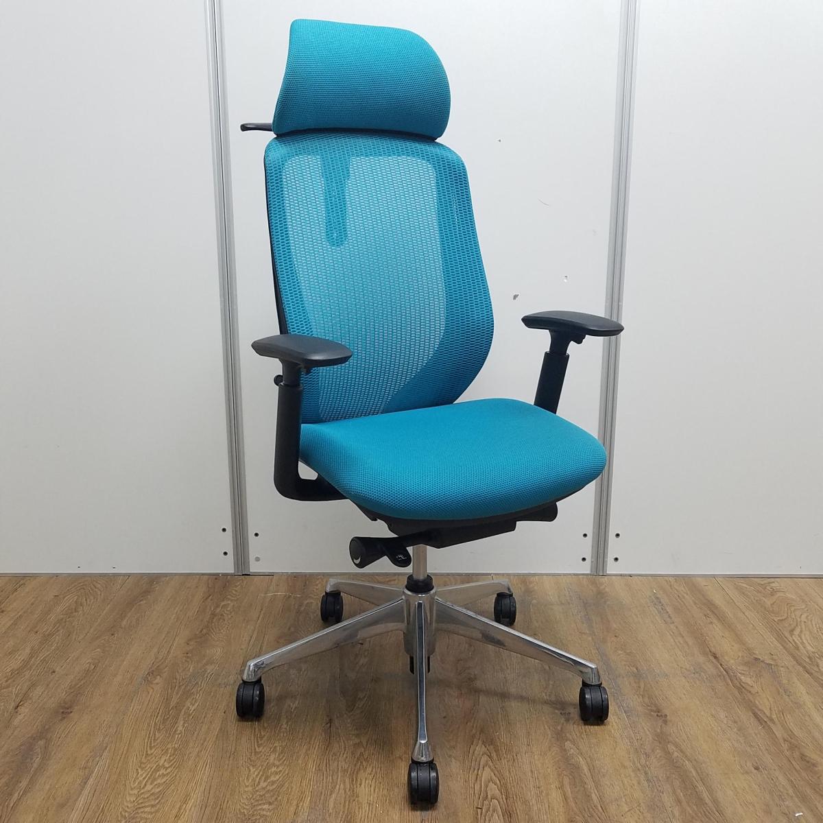 オカムラ製 シルフィーシリーズ ブルーグリーン コートハンガー ヘッドレスト ポリッシュ脚 アジャストアーム※可動肘 肘付きハイバックチチェア!!- 京都東寺店