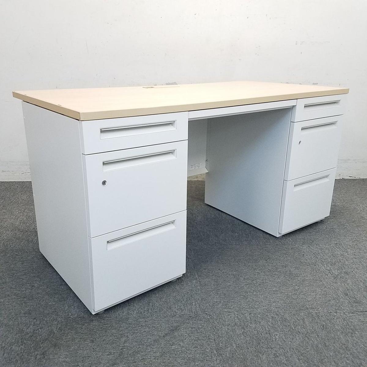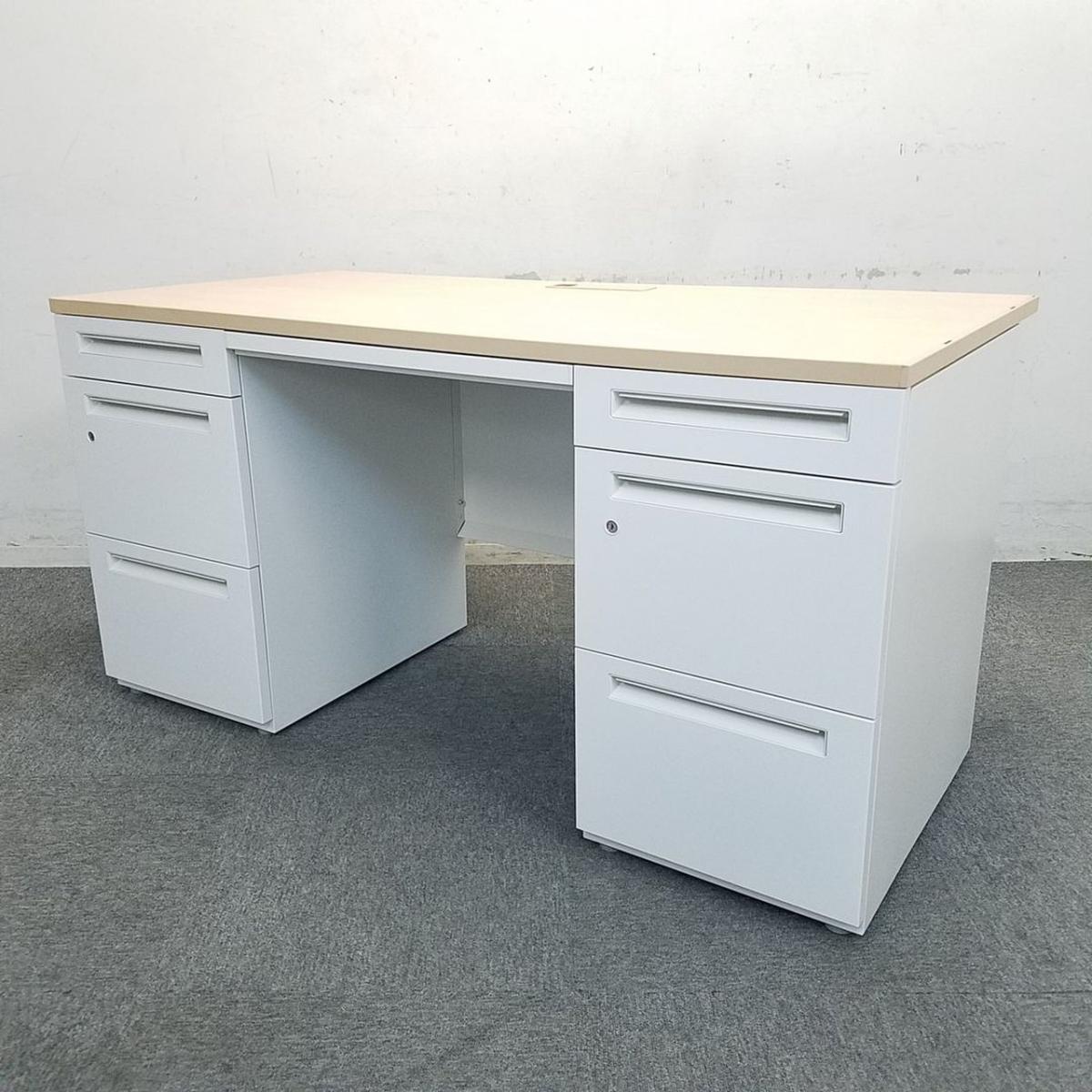 【2台入荷!】■ウチダ(UCHIDA)製 スカエナ(SCAENA)シリーズ 両袖机 W1400㎜ 配線:Kタイプ ■天板:木目ナチュラル × 本体ホワイト【2507】【A01026898】