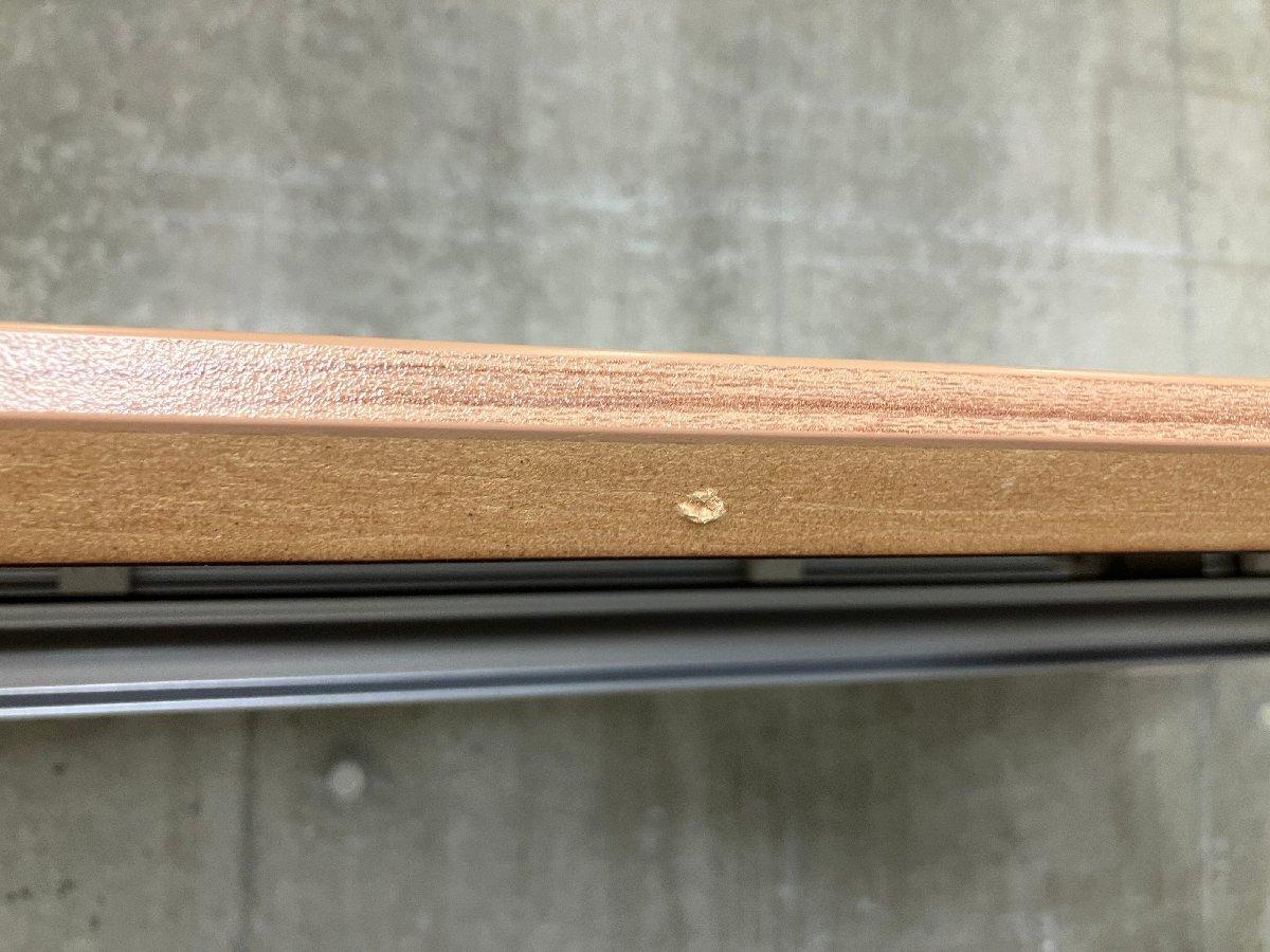 - 壊れている天板歪み、アジャスター無し、キャスター使用不可のようにそのテーブルの本来の効用を果たすための機能に不具合がある。