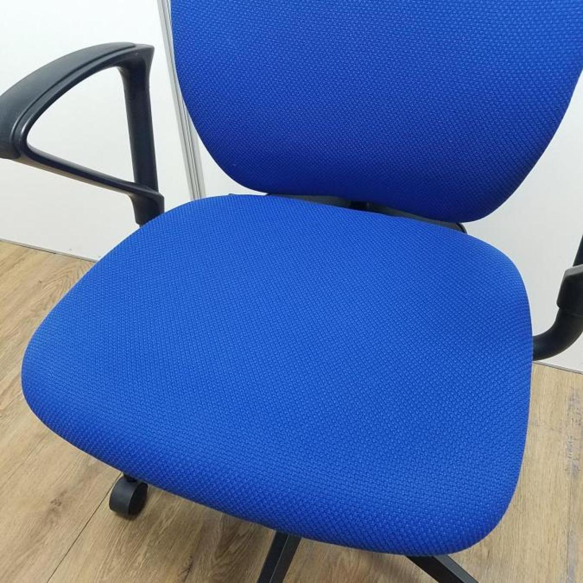 【一人ひとりにマッチする座り心地!ミドルクラスの定番チェア!】■イトーキ(ITOKI)製 プラオ(PRAO)チェア 肘付ローバック ■ストロングブルー ×ブラックシェル ■サークル肘 ■ランバーサポート付き ■防炎生地