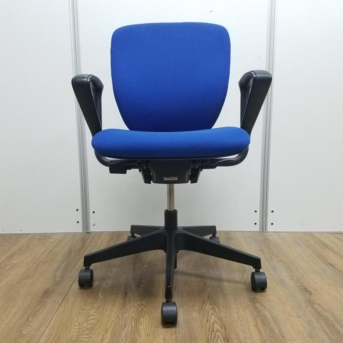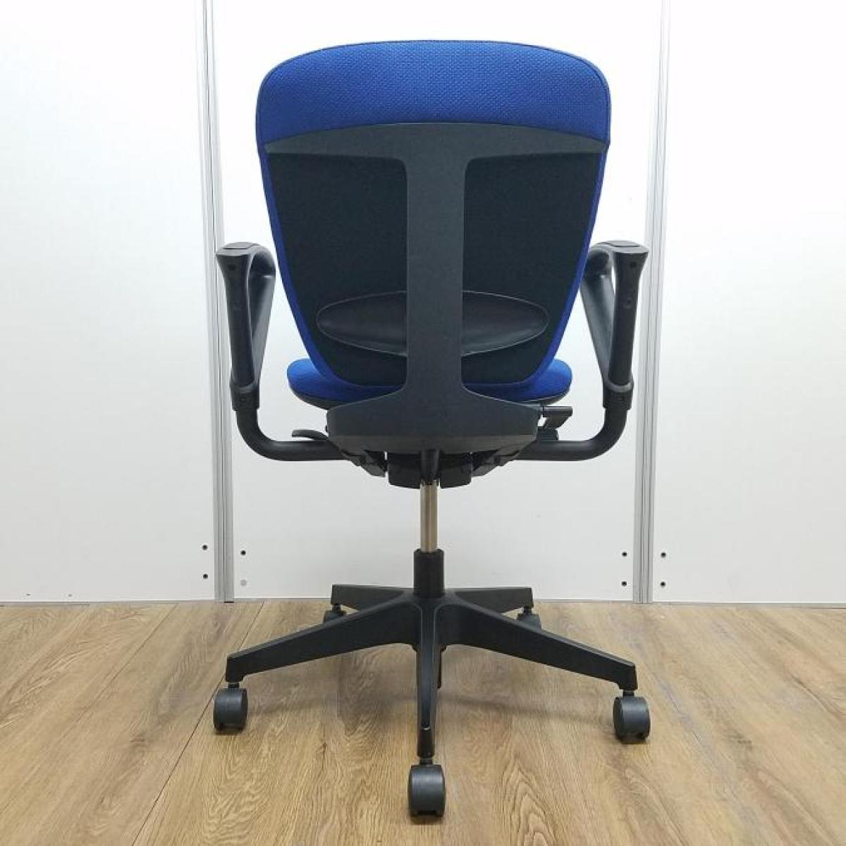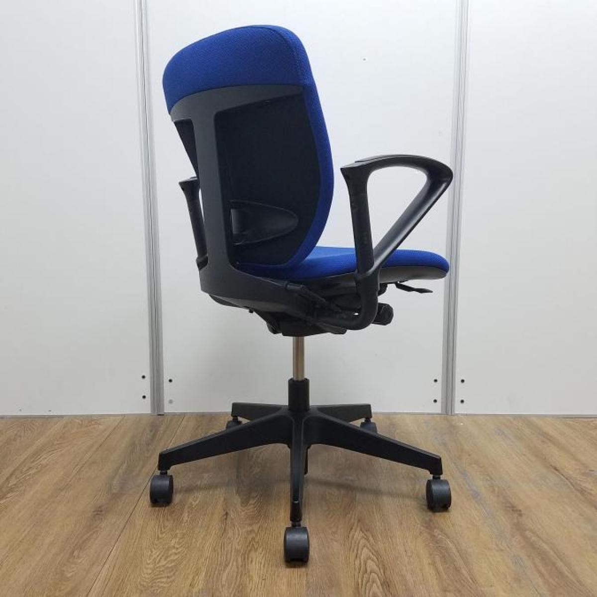【一人ひとりにマッチする座り心地!姿勢の変化にフレキシブルに対応!】■イトーキ(ITOKI)製 プラオチェア 肘付 ローバック ■サークル肘 ■背面ストロングブルー×座面ブラック オフィスバスターズ 東大阪店【K11】