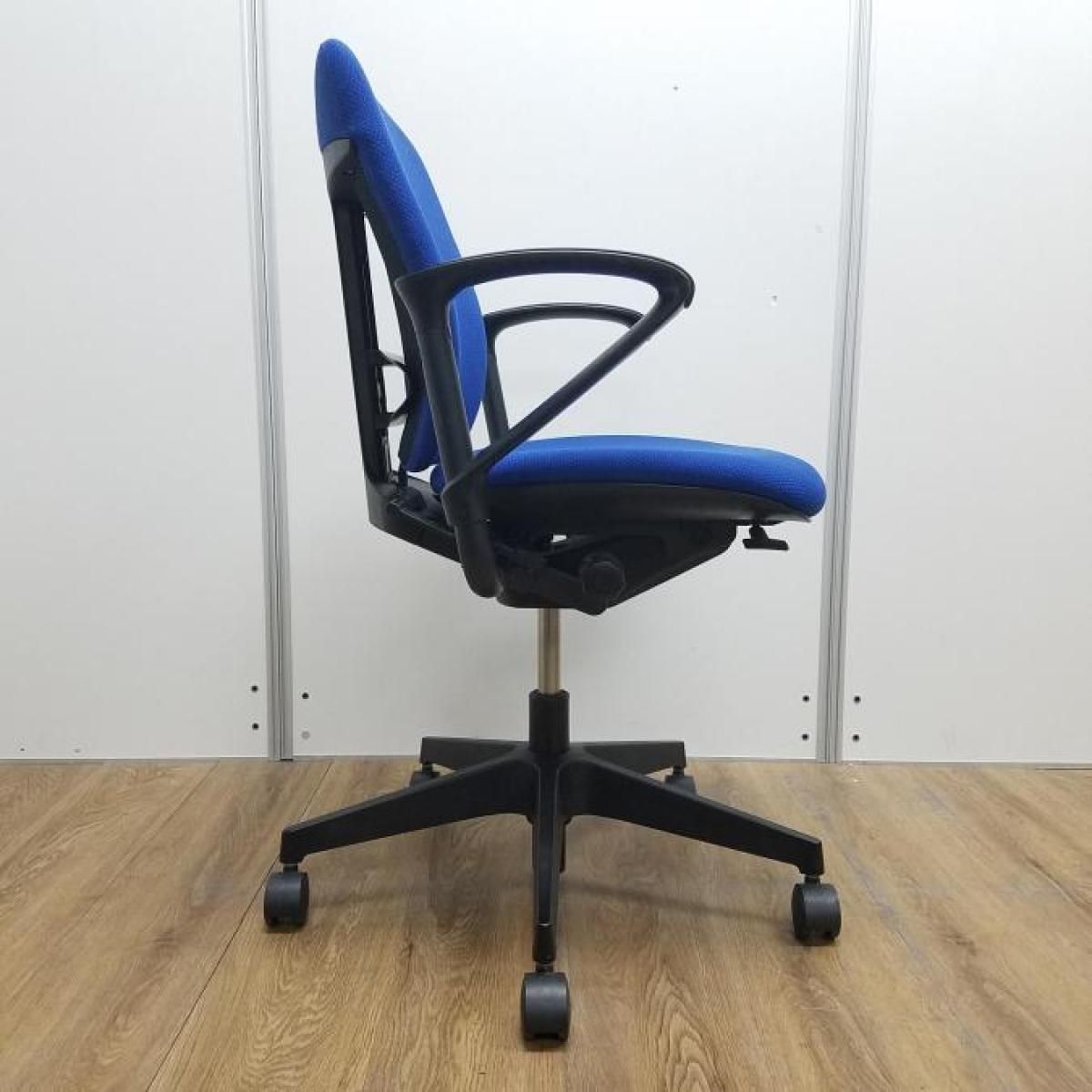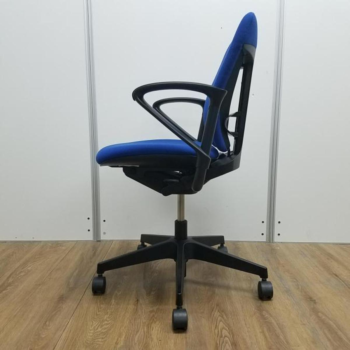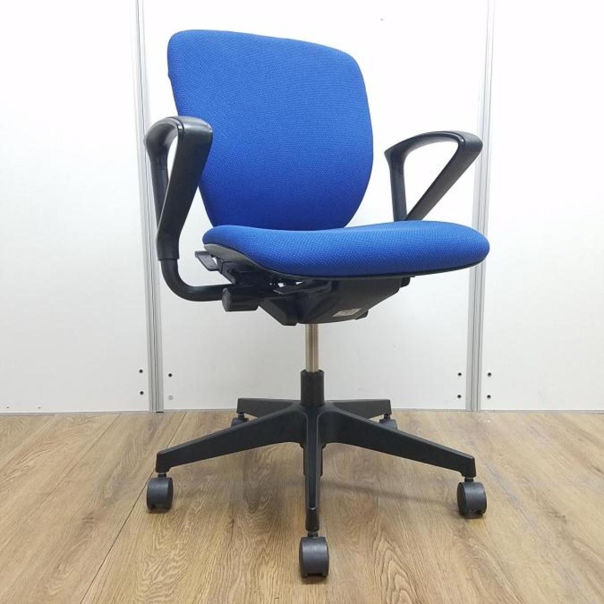 【一人ひとりにマッチする座り心地!姿勢の変化にフレキシブルに対応!】■イトーキ(ITOKI)製 プラオチェア 肘付 ローバック ■サークル肘 ■背面ストロングブルー×座面ブラック オフィスバスターズ 東大阪店【K11】