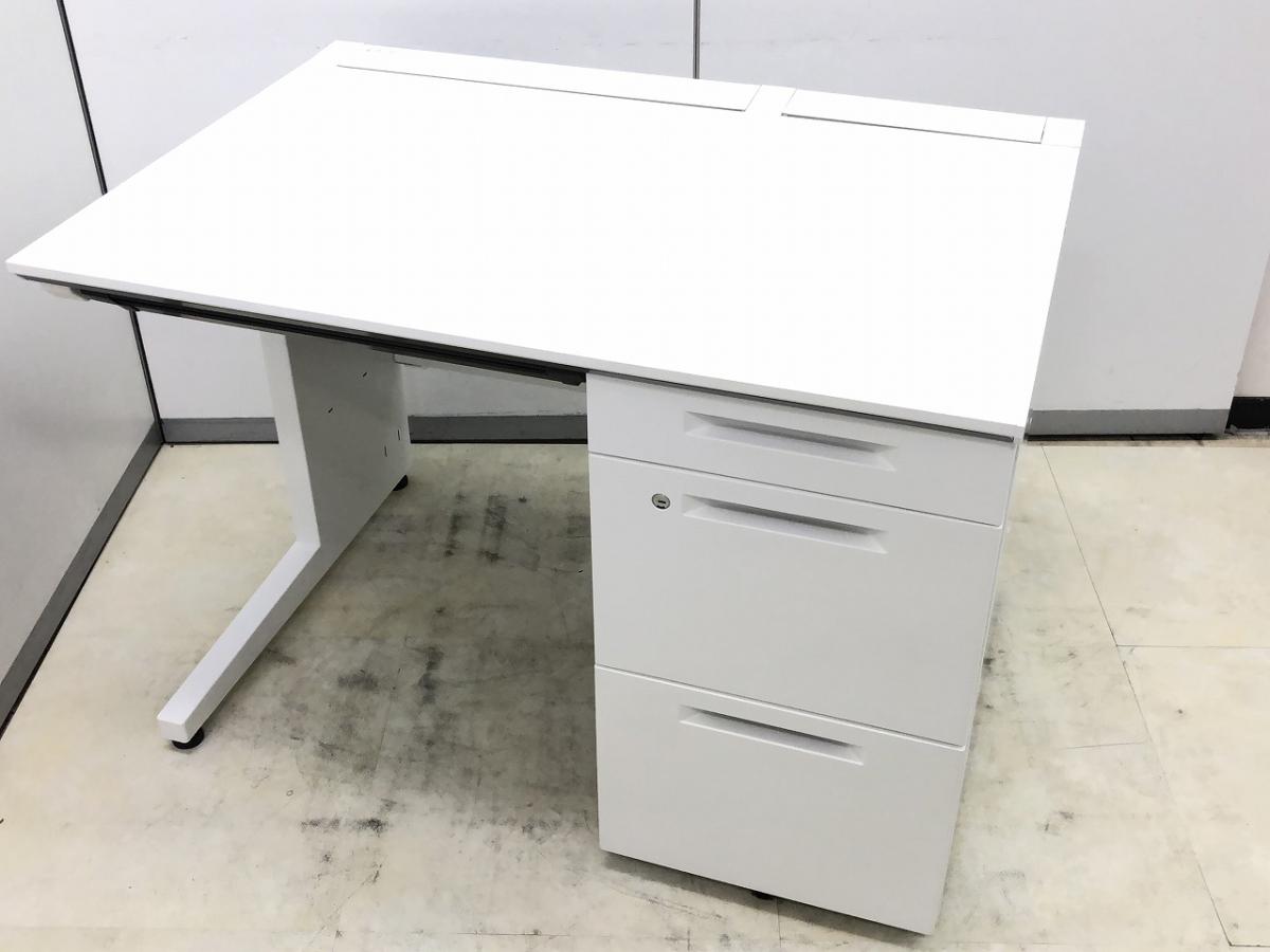 【省スペースのオフィスに最適!コンパクトサイズの片袖机!配線カバーも充実の高品質デスク!】■コクヨ(KOKUYO)製 アイエス(iS)シリーズ 片袖机 W1000×D700㎜ ■シリンダー錠 ■ホワイト