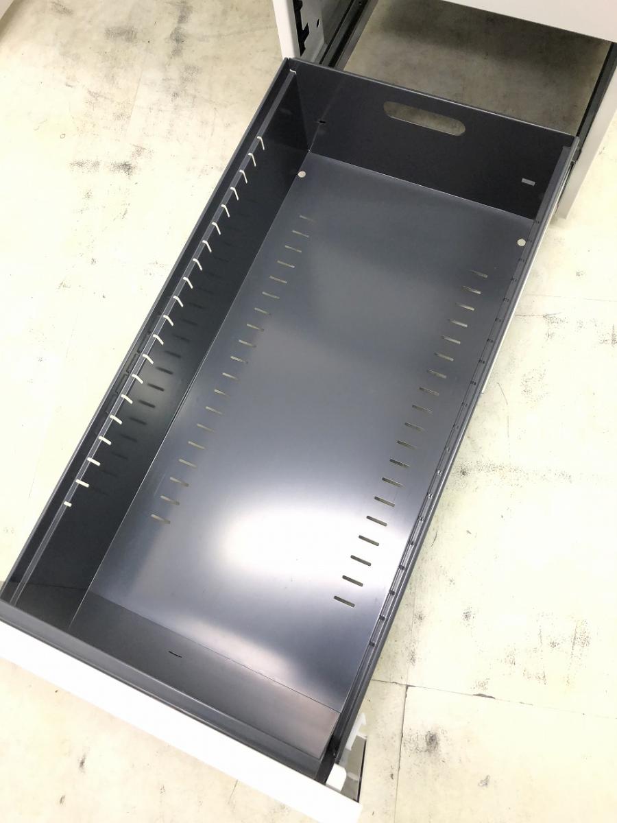 - 地震時、センター引出しが飛び出さないよう、ラッチ機構を装備。脚はデスクの横ズレを軽減させる設計になっています。