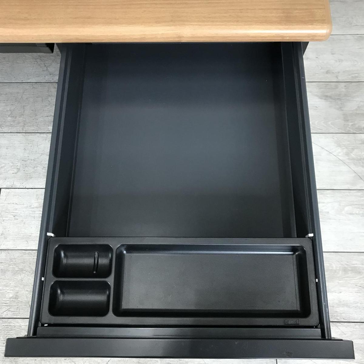 【在庫入替セール!1台限定!!】【大人気ブラックカラー!収納も充実で使いやすい!】■PLUS(プラス) LEEDシリーズ 片袖机 L字脚 ■幅1200㎜×奥行700㎜ ■本体:ブラック 天板:木目ナチュラル(ミディアムウッド)- 神戸・三宮店