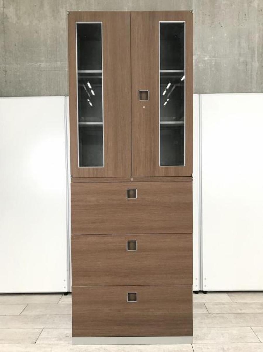 【木目調の書庫が限定入荷!】◆オカムラ/レクトライン ブラウン ガラス扉 キャビネット 博多 天神 オフィスバスターズ 中古 九州最大級- 福岡博多店