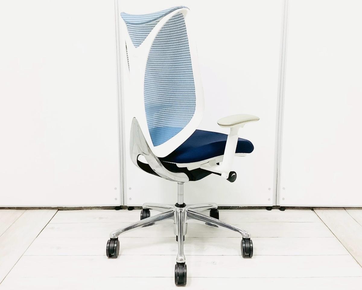 【T11】【T9】【K7】【商品入替のため、残り5脚限り】オカムラ製 サブリナシリーズ アクアブルー 背もたれ/アクアブルーx座面/ダークブルーのツートンカラー ホワイトフレーム アジャストアーム※可動肘 前傾チルト付 流れるような美しいフォルムの最高級メッシュチェア! 肘付きハイバックチェア!!