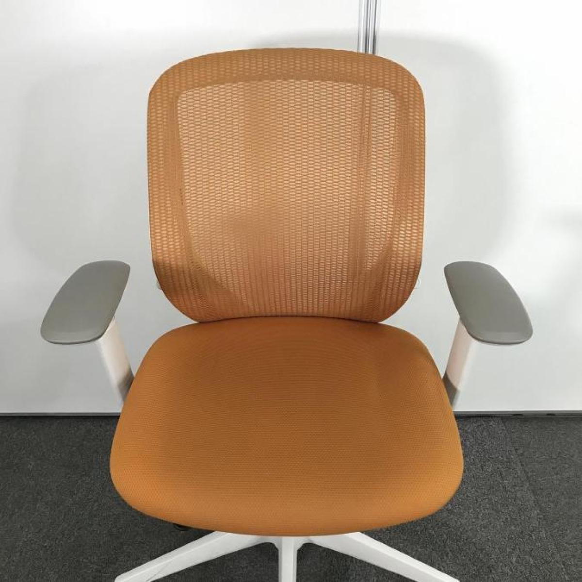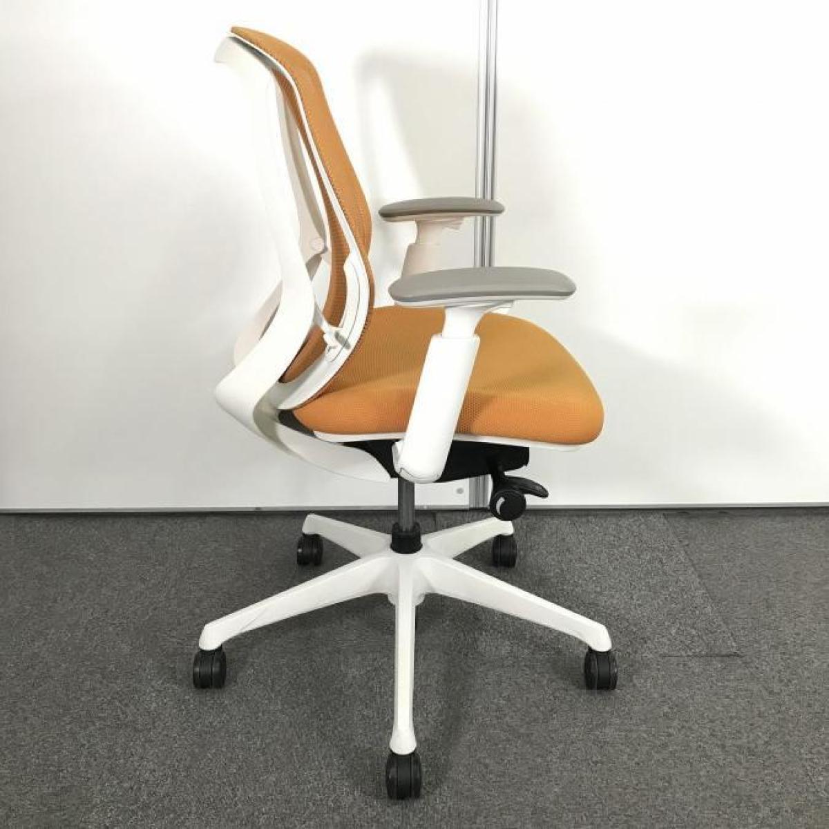 【在庫入替セール】【2脚限定】【三次元曲面が快適にフィット!!前傾チルト機能付の大人気メッシュチェア!】■オカムラ(okamura)製 シルフィー(Sylphy) 肘付ローバック ■メッシュバック ■可動肘 ■オレンジ / フレーム色:ホワイトサーキュラーバリューCO2削減量の算出について