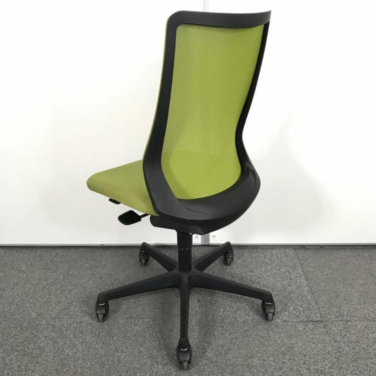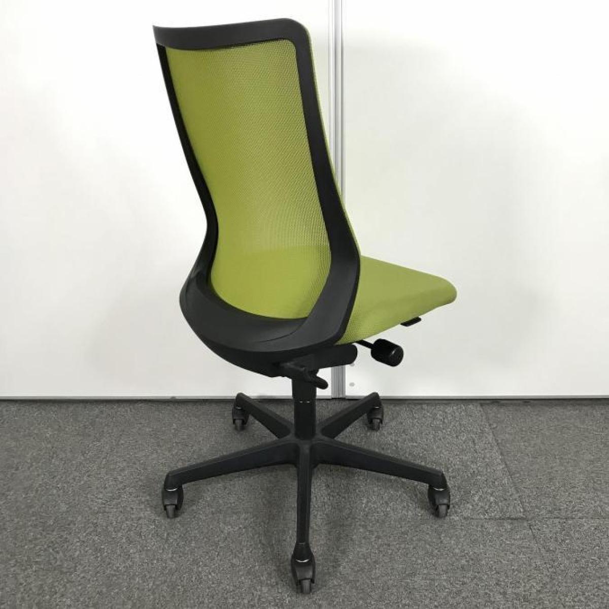 【在庫入替セール】【4脚限定】【腰まわりをしっかりホールド!長時間作業も快適フィット!】■オカムラ(okamura)製 フルーエントチェア ハイバック肘無し ■背面メッシュ ■グリーン×ブラックフレーム- 神戸・三宮店