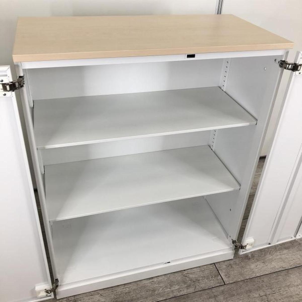 【収納物がひとめで分かる両開き戸タイプ!】■コクヨ(KOKUYO)製 エディア(EDIA)シリーズ 両開き書庫 ローキャビネット H1130㎜ ■天板・ベース付 ■ホワイト ■シリンダー錠【IB】