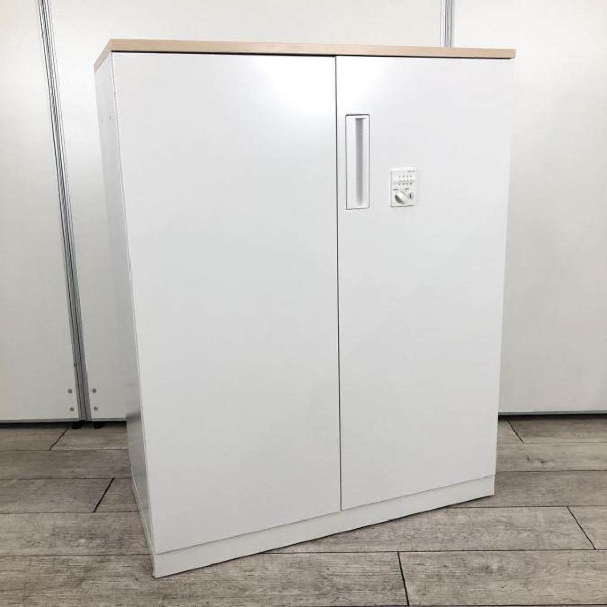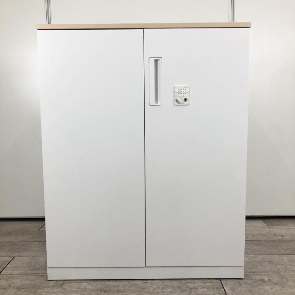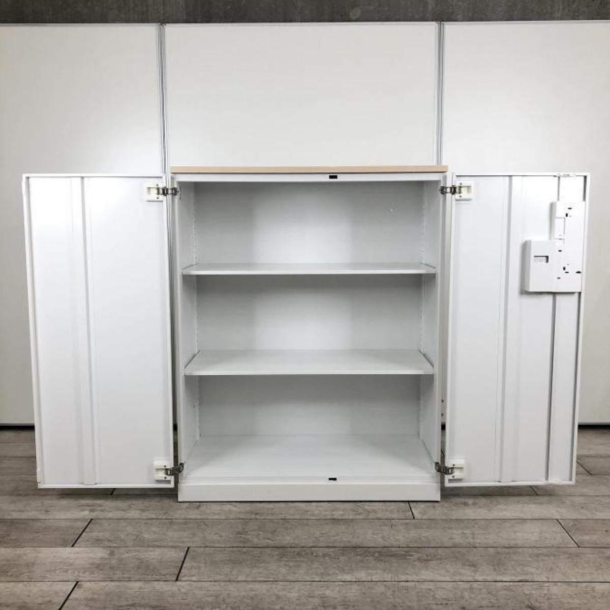 【収納物がひとめで分かる両開き戸タイプ!】■コクヨ(KOKUYO)製 エディア(EDIA)シリーズ 両開き書庫 ローキャビネット H1130㎜ ■天板・ベース付 ■ホワイト ■シリンダー錠